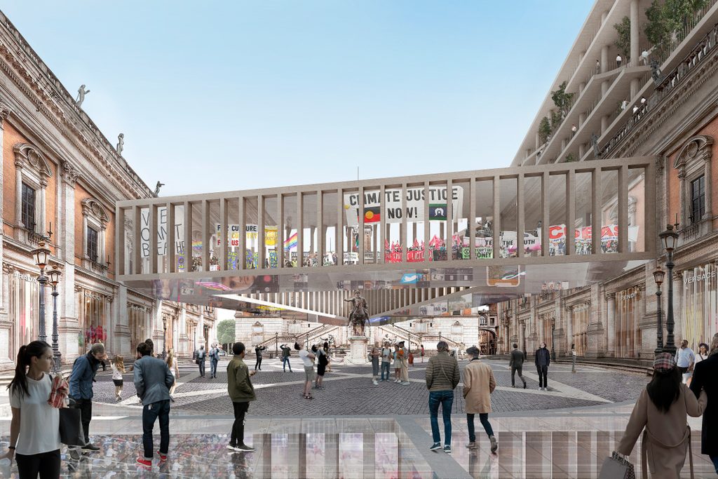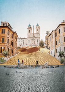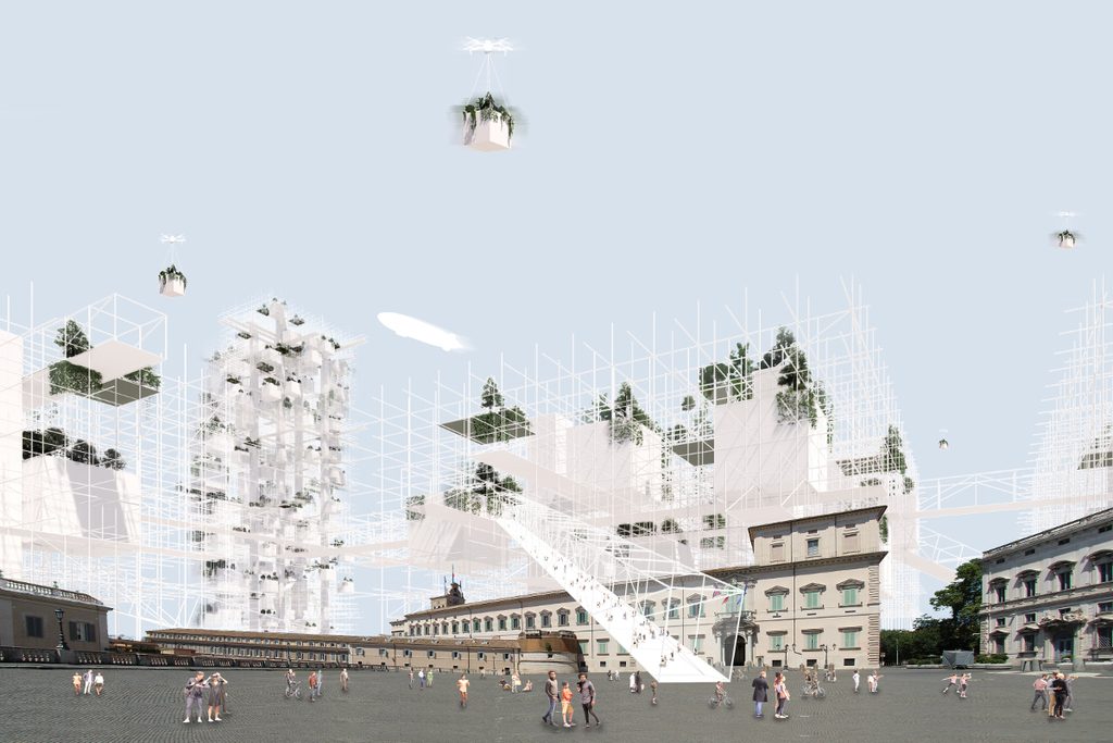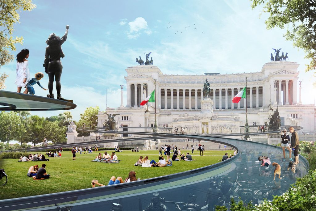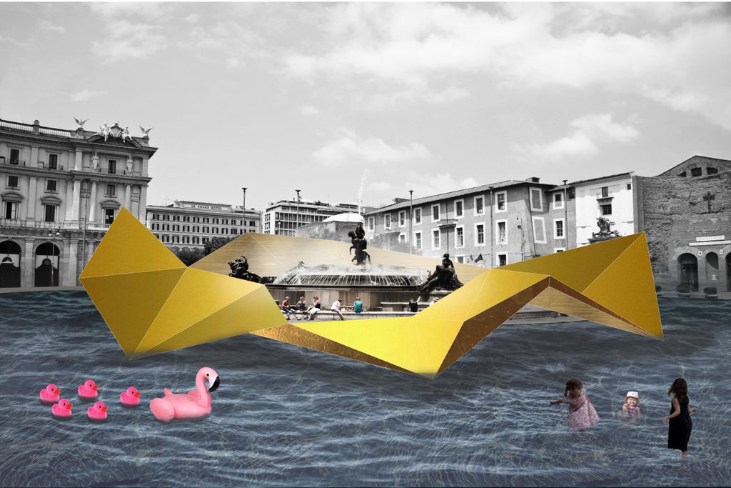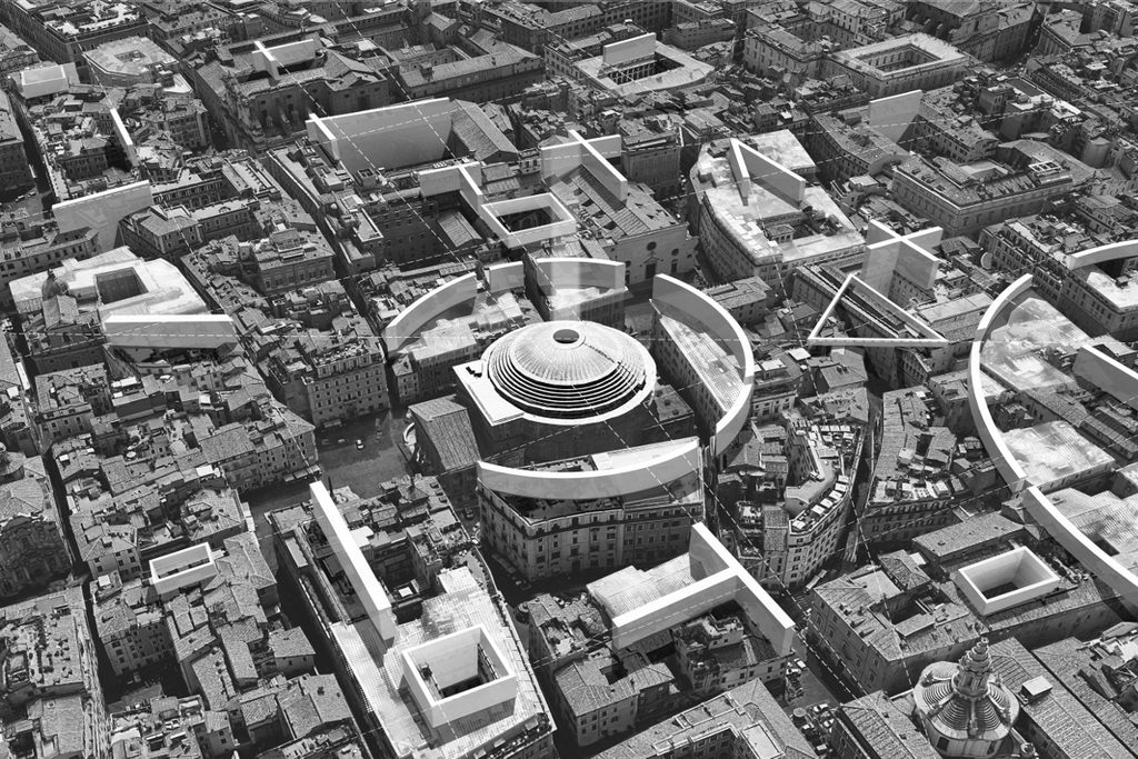 “L’inesorabile processo di incancrenimento di Roma dettato da una costante protezione della preesistenza a discapito dell’innovazione si è susseguito tra tutte le amministrazioni capitoline degli ultimi decenni, portando all’aborto di grandi opere che avrebbero dovuto cambiare il volto di Roma per sempre. […] Negli ultimi vent’anni la Capitale ha visto la sua opportunità di evoluzione sgretolarsi, delegando a Milano ogni possibilità di studio e sperimentazione architettonica. LE INTOCCABILI – THE UNTOUCHABLES è un’azione di analisi e critica di una Roma bloccata sotto la naftalina, promossa e curata dallo studio TA.R.I-Architects. […] Dodici studi internazionali under 36 sono stati invitati ad immaginare come alcuni dei luoghi più iconici della Città Eterna, intoccabili per l’appunto, possano modificarsi in un futuro prossimo, suggerendo attraverso immagini un ritrovato rapporto tra la stratificazione storica della città e l’ineluttabilità e necessità del progresso”.