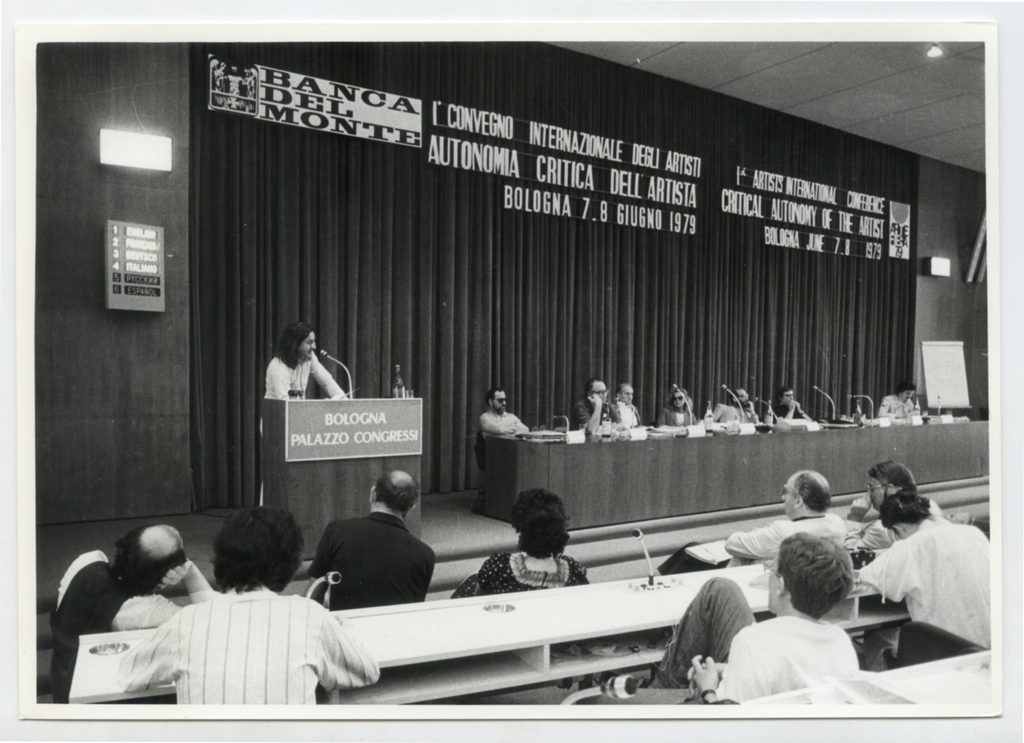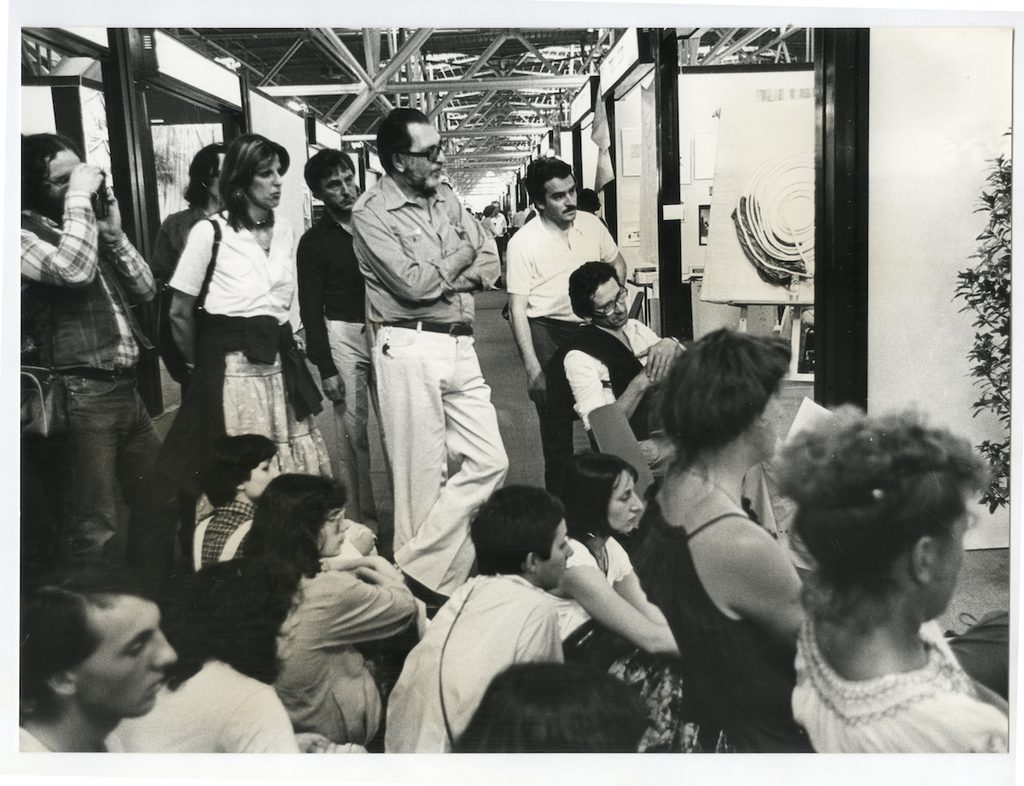 Il contesto era quello di una città all’apice della sua effervescenza culturale, ancora comunque caratterizzata dallo spirito sessantottesco in cui “il mercato” era un male da combattere. Eppure quell’evento mercantile diventò spunto per alcune iniziative d’avanguardia (vedi le Settimane internazionali della performance curate da Renato Barilli con la collaborazione di Francesca Alinovi e Roberto Daolio, qui il ricordo di Barilli) e per alcuni dibattiti, convegni e disamine critiche sullo stato dell’arte di grande attualità, come quella – ricordata sempre nel testo di Spadoni -, dello storico dell’arte Tommaso Trini nel catalogo dell’edizione ’78 “sullo stato delle strutture artistiche, il ruolo dei galleristi, il potere crescente delle aste, e le Fiere, alle quali si attribuiva una funzione anche di politica culturale in quanto il mercato diveniva con loro un fatto pubblico“.