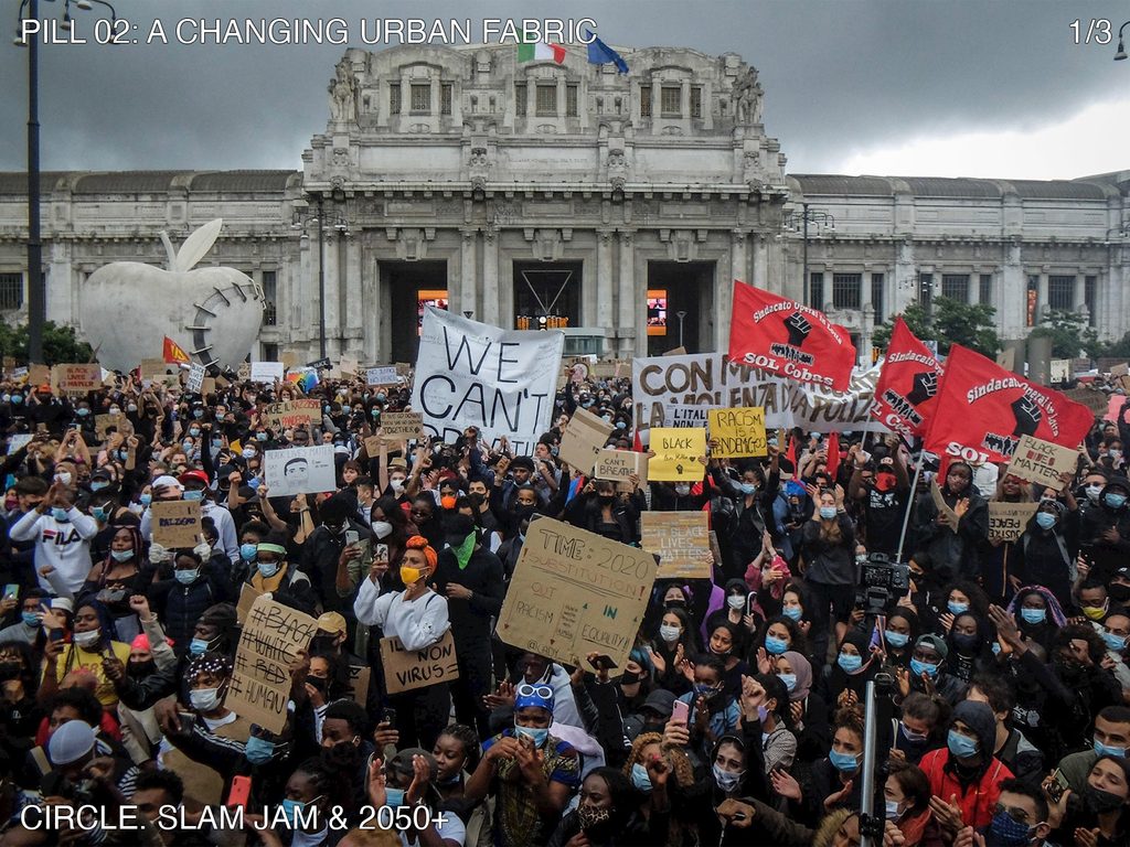 La piattaforma ospita una serie di contributi commissionati, a cura di 2050+ e Slam Jam, di urbanisti, architetti, designer, futurologi che con la loro pratica hanno lavorato a modi sperimentali per interagire con il tessuto cittadino