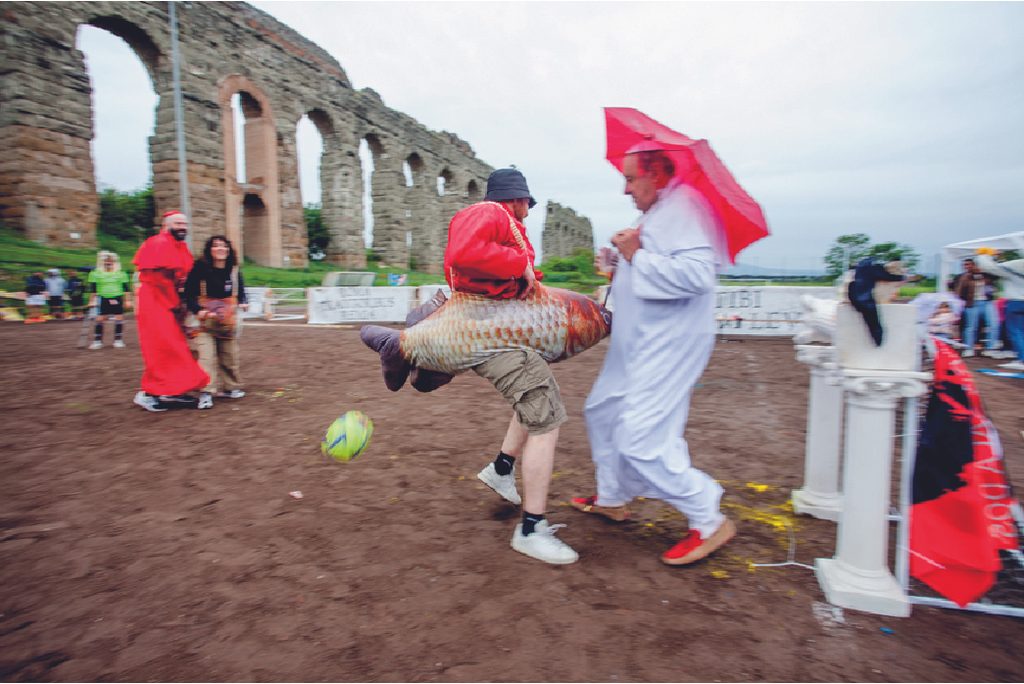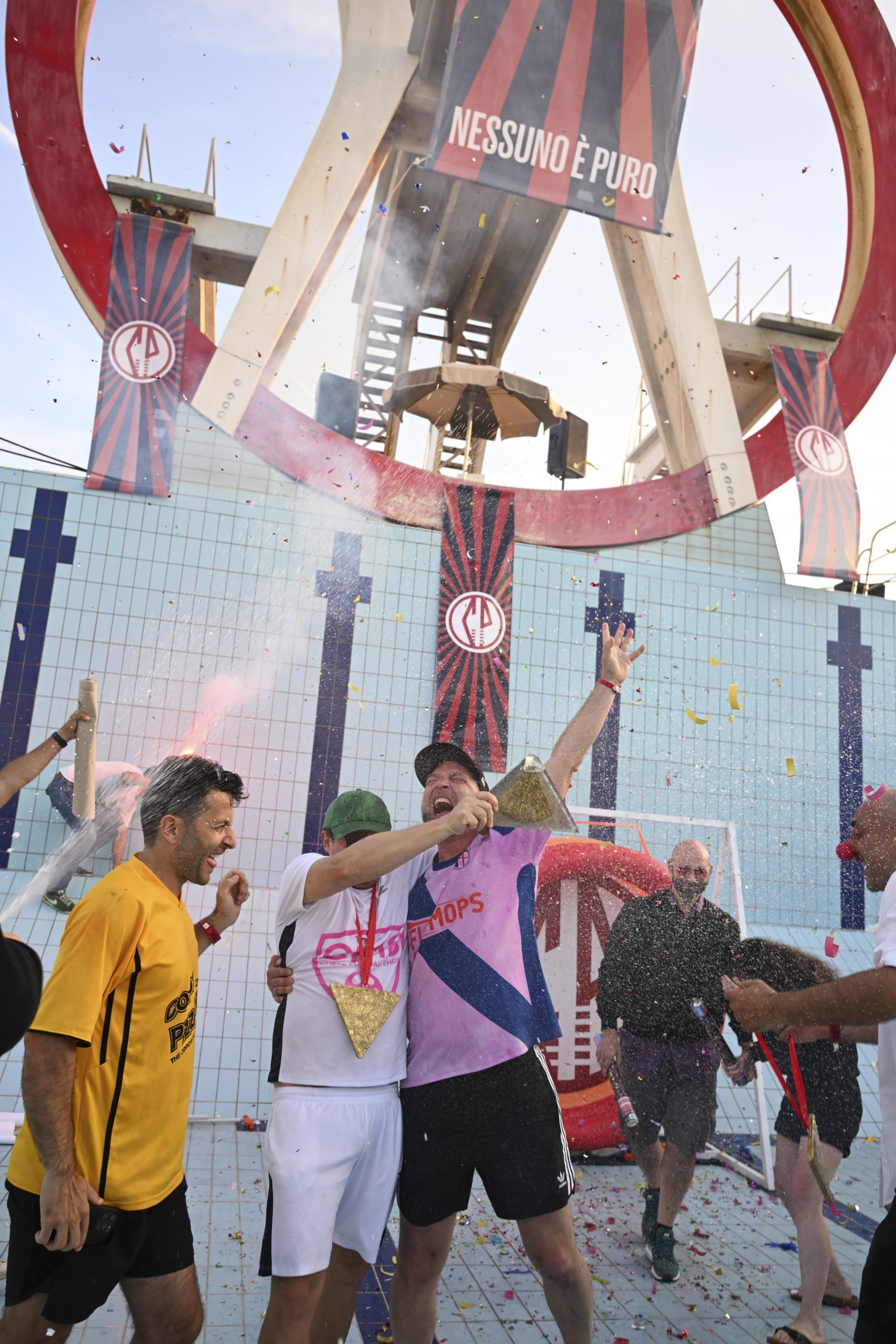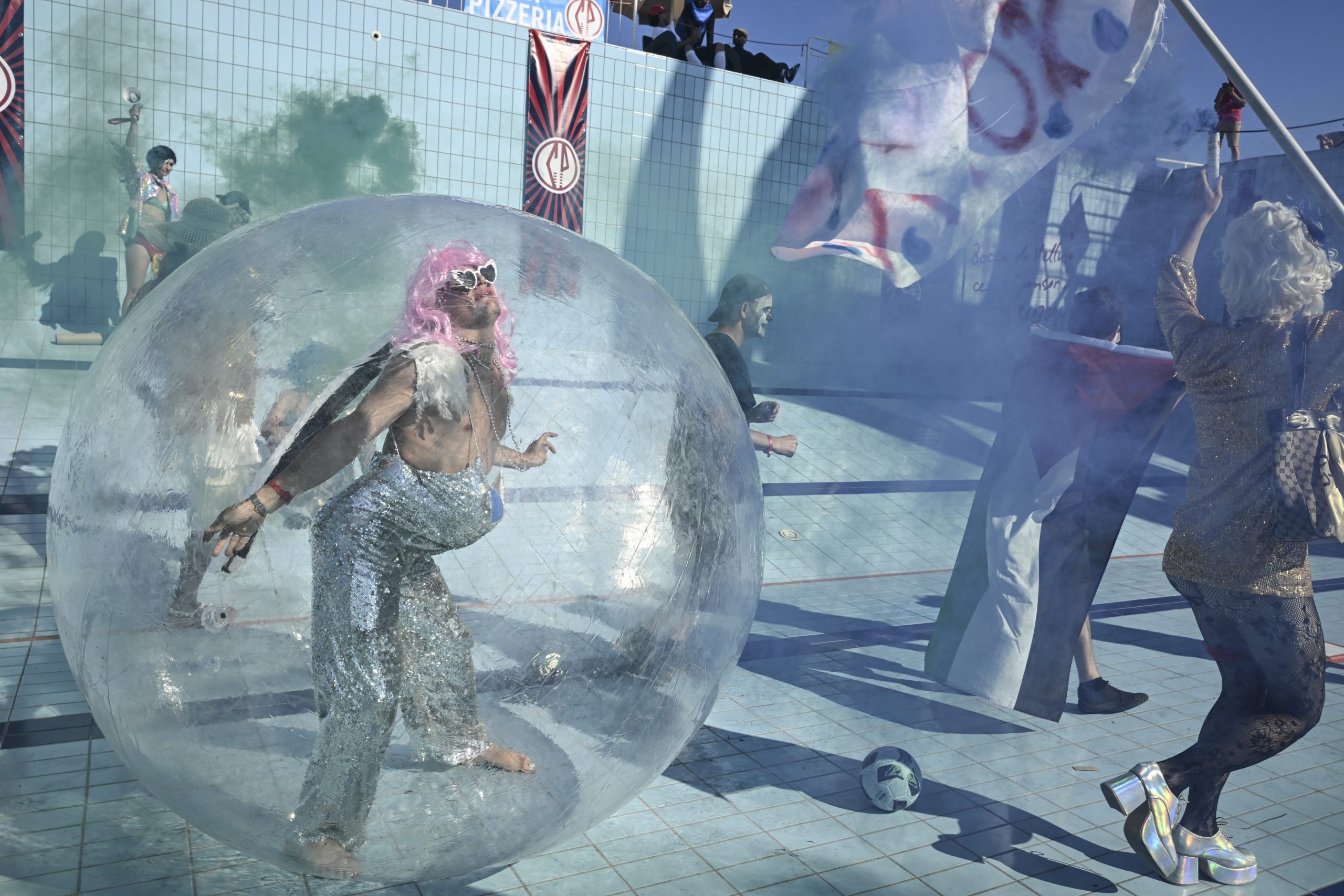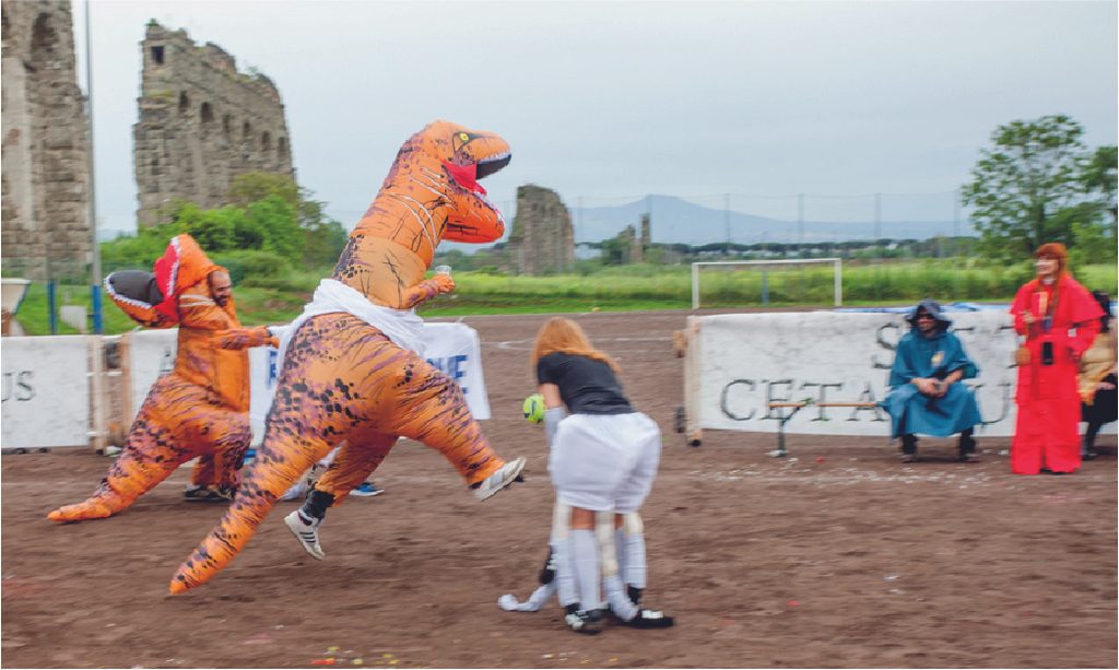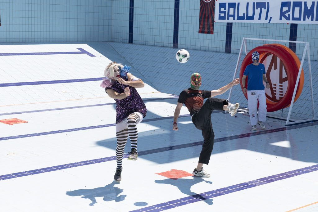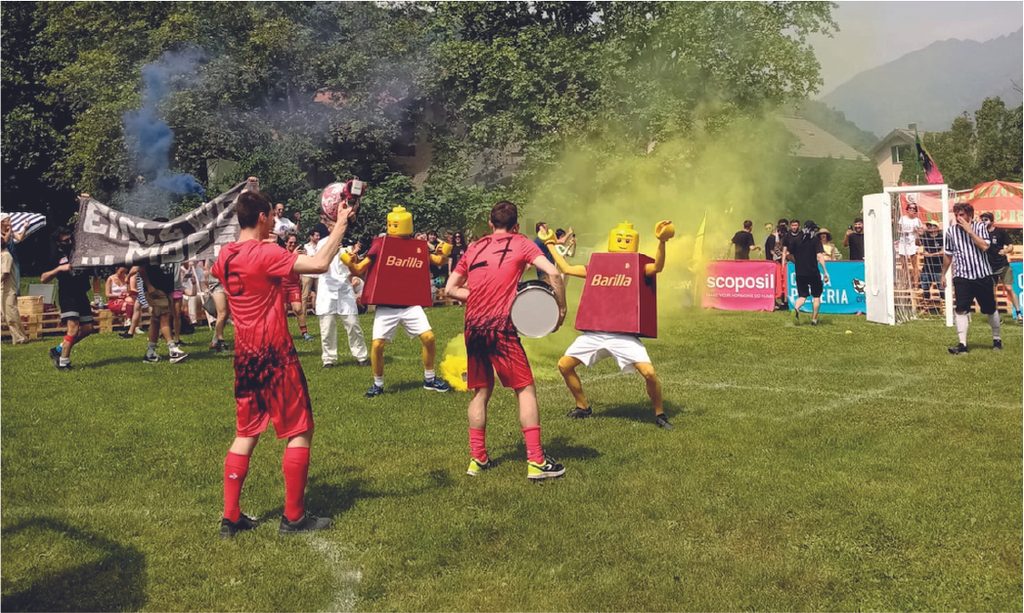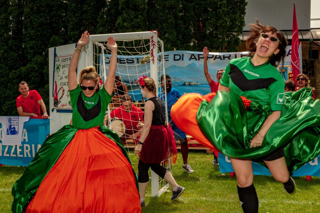 Il risultato è la Coppa Pizzeria, vale a dire il torneo di calcio più pazzo del mondo, dove “le regole sono fatte per essere infrante e l’ordine sociale è messo in discussione […] un evento dove l’imprevedibilità e il caos regnano sovrani, dove il normale diventa stravagante e il prevedibile diventa sorprendente”. Una performance gigantesca e molteplice che ha solo le sembianze di una normale partita tra amici e che è anche lontana anche dall’essere un reboot del carnevale, come invece farebbero immaginare gli abiti completamente folli indossati dai partecipanti.