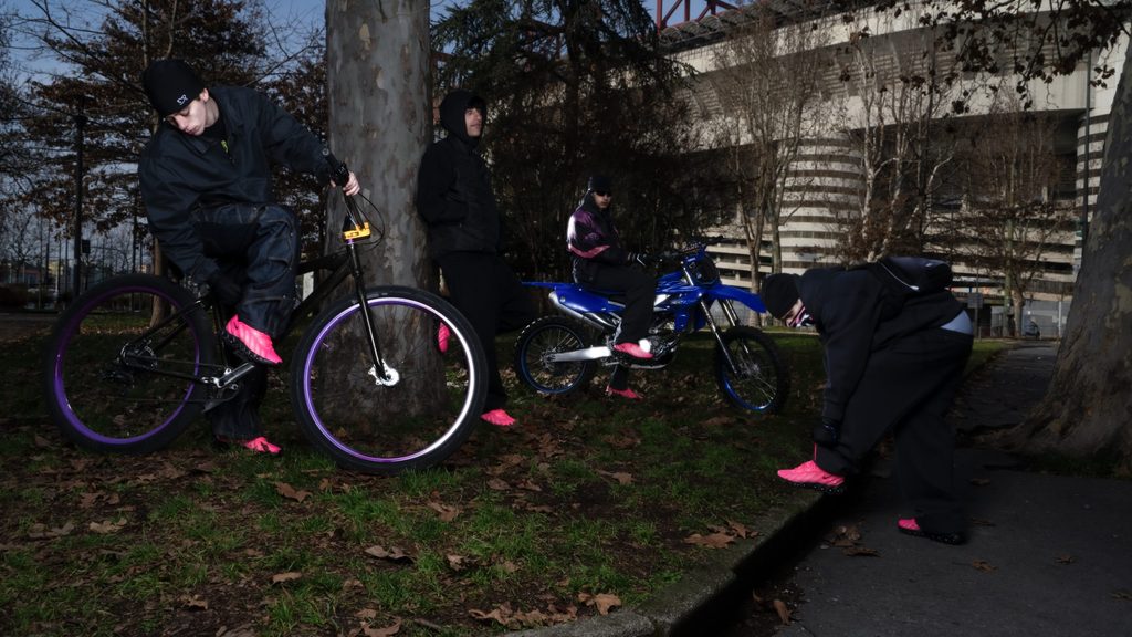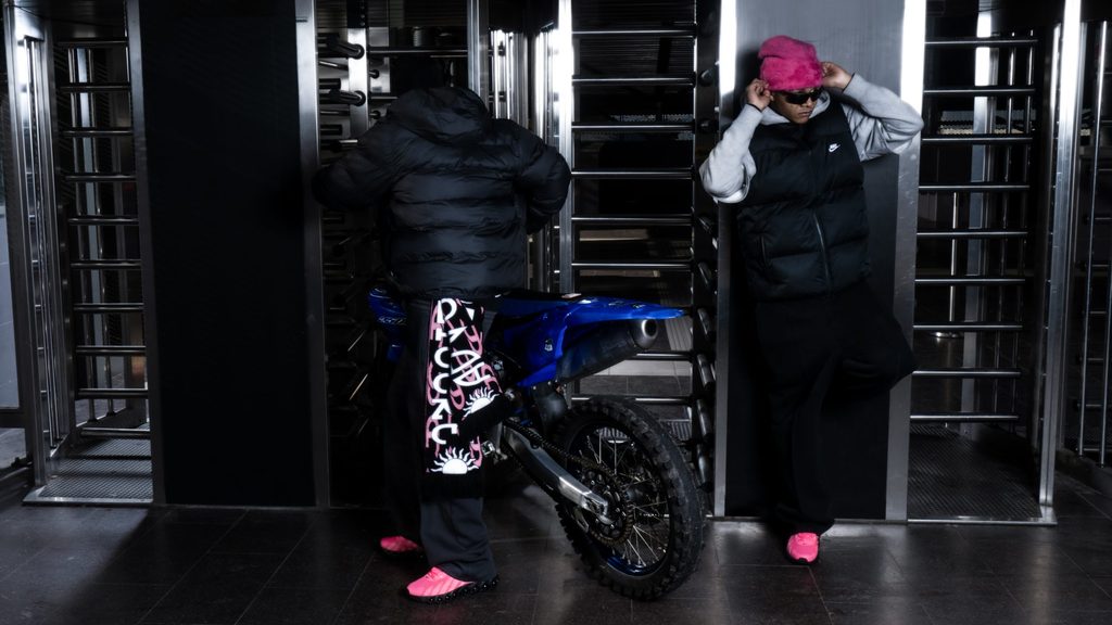 È superfluo dire che, dove ci sono abbastanza giovani, c’è sempre un grande fermento online. E che dove c’è fermento online c’è attenzione, e l’attenzione è una merce molto importante. Il periodo tra il 2023 e il 2024 può essere identificato come il momento in cui il fenomeno Bikelife è esploso, con la complicità di alcuni grandi brands. Uno su tutti: Il coinvolgimento di Nike ha segnato un momento cruciale per 24.7 Fastlife. La loro prima collaborazione è stata un road trip: sei rider in un camper, moto fissate a un rimorchio, e un viaggio per l’Italia di 12 giorni, diverse tappe e un micro-evento per ognuna. Questo tour, dicono i ragazzi, li ha davvero portati sotto i riflettori, e a partire da quel momento hanno continuato a organizzare tour ed eventi in tutta Europa, filmandosi in condizioni estreme. Iniziava la promozione della comunità e della loro cultura. Assieme nacque il progetto d’abbigliamento, volto a rappresentare autenticamente l’etica della Bikelife, e l’uniforme non ufficiale del movimento. È così che un fenomeno underground diventa una forza culturale e riconoscibile, celebrata in tutta Italia.
