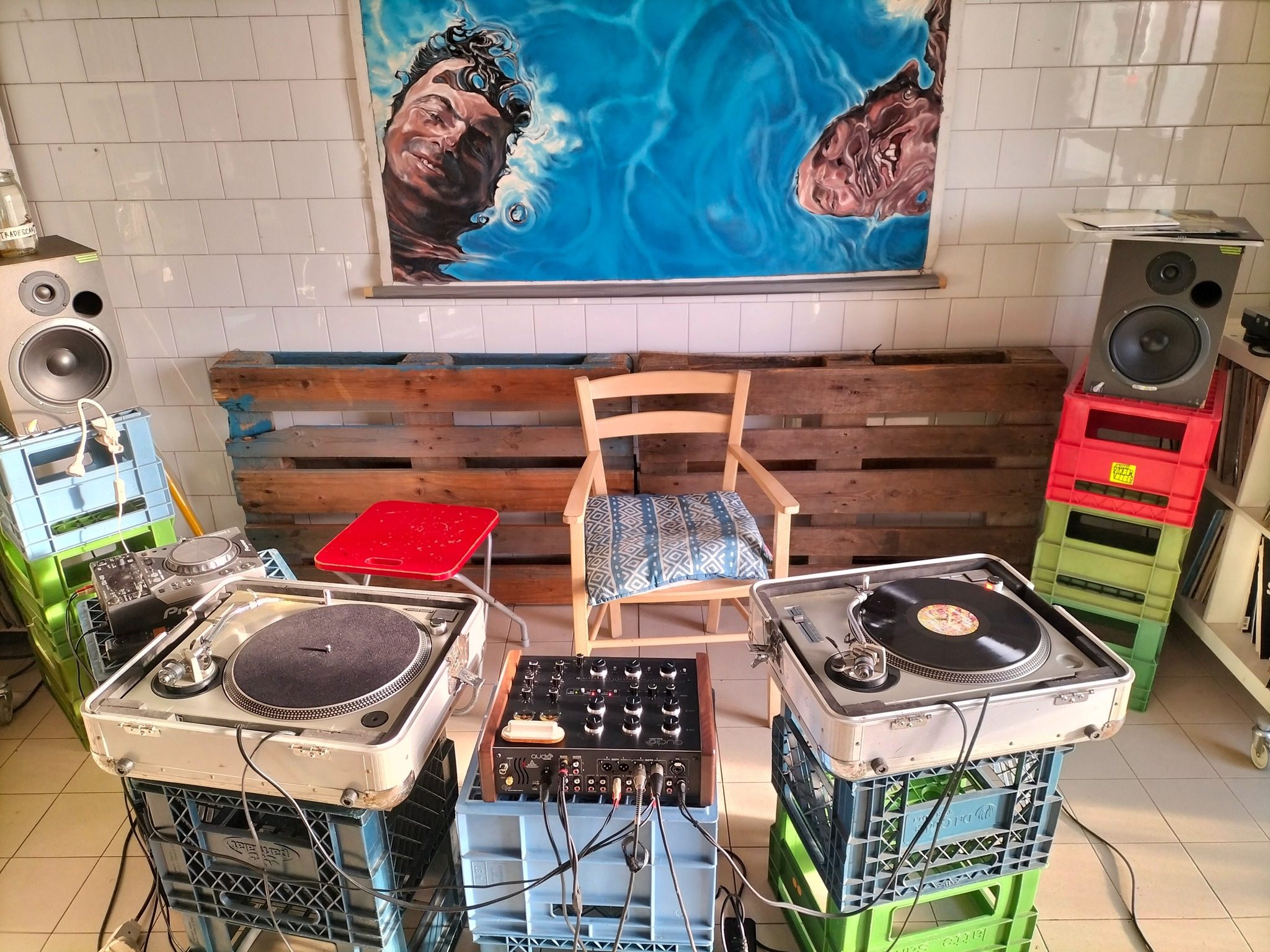 Pescheria è suono. È il suono dei tanti vinili qui custoditi e fatti circolare attraverso la propria distro; è il suono dei dischi che girano per essere ascoltati in una sessione o per essere miscelati in un set; è il suono delle prove e delle registrazioni; è il suono dei live ospitati; è il suono delle persone che qui si ritrovano per presentazioni editoriali, performance artistiche o piccole expo. È il suono dei treni che passano a pochi metri di distanza dalla porta d’ingresso, delle macchine che su via Alessi riescono a prendere velocità, è il suono delle chiacchiere sul marciapiede. È un suono multiforme e, soprattutto, incessante, che volontariamente non vuole essere spento ma abbracciato nella sua onnipresenza quotidiana.