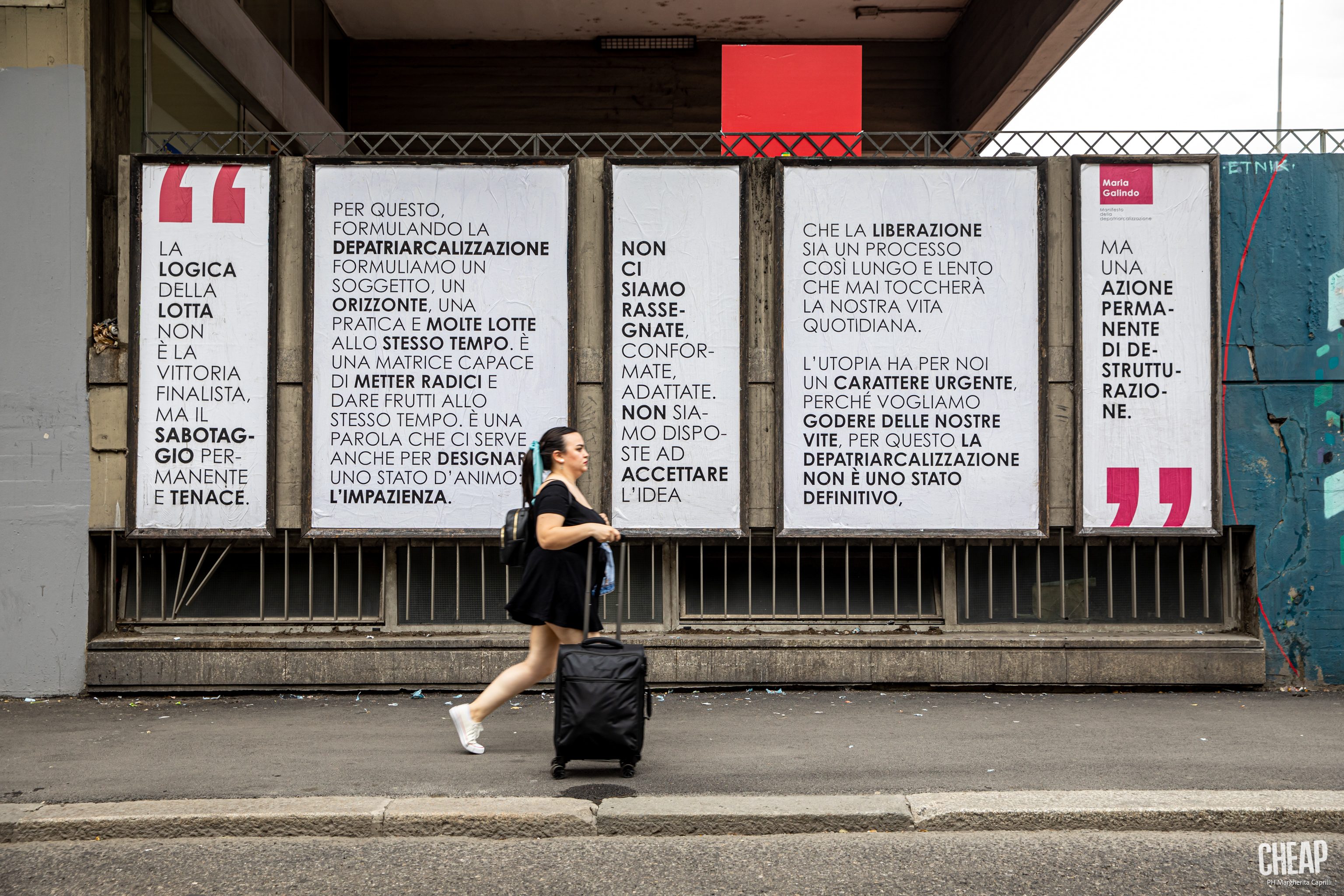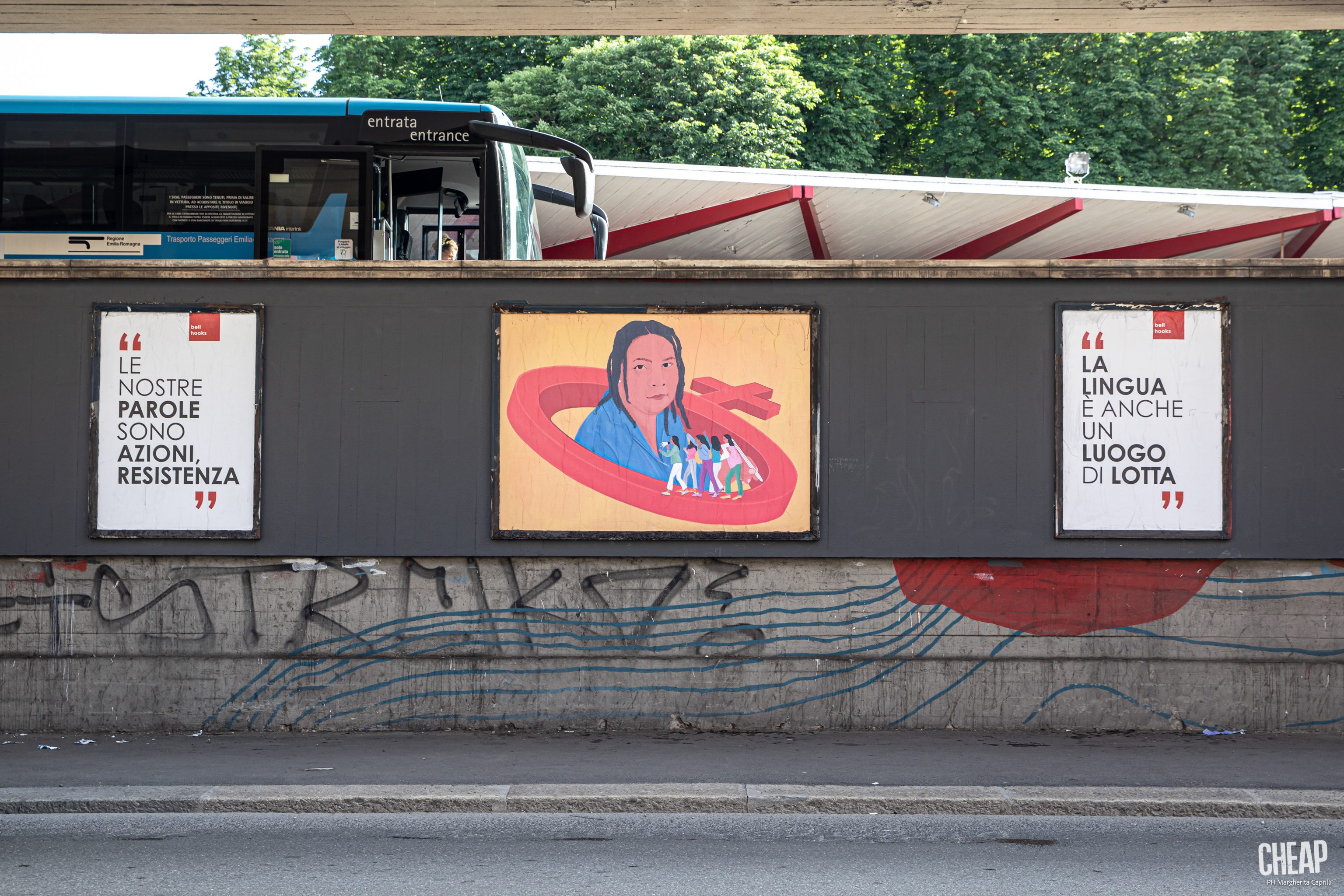Dopo un po’ di tempo il muro dell’autostazione di Viale Masini è tornato a riempirsi dei manifesti di CHEAP. Sui 250 metri quadrati scanditi da 50 bacheche sono, infatti, apparsi i lavori del progetto TACI, anzi PARLIAMO che prende il via da una citazione di Carla Lonzi per veicolare attraverso parole, fotografia, illustrazione, grafica vettoriale, street poster pasting e fumetto l’urgenza e la visione dei femminismi intersezionali.