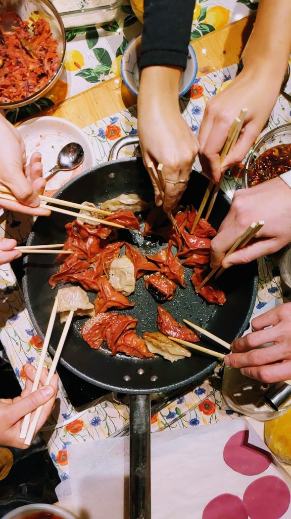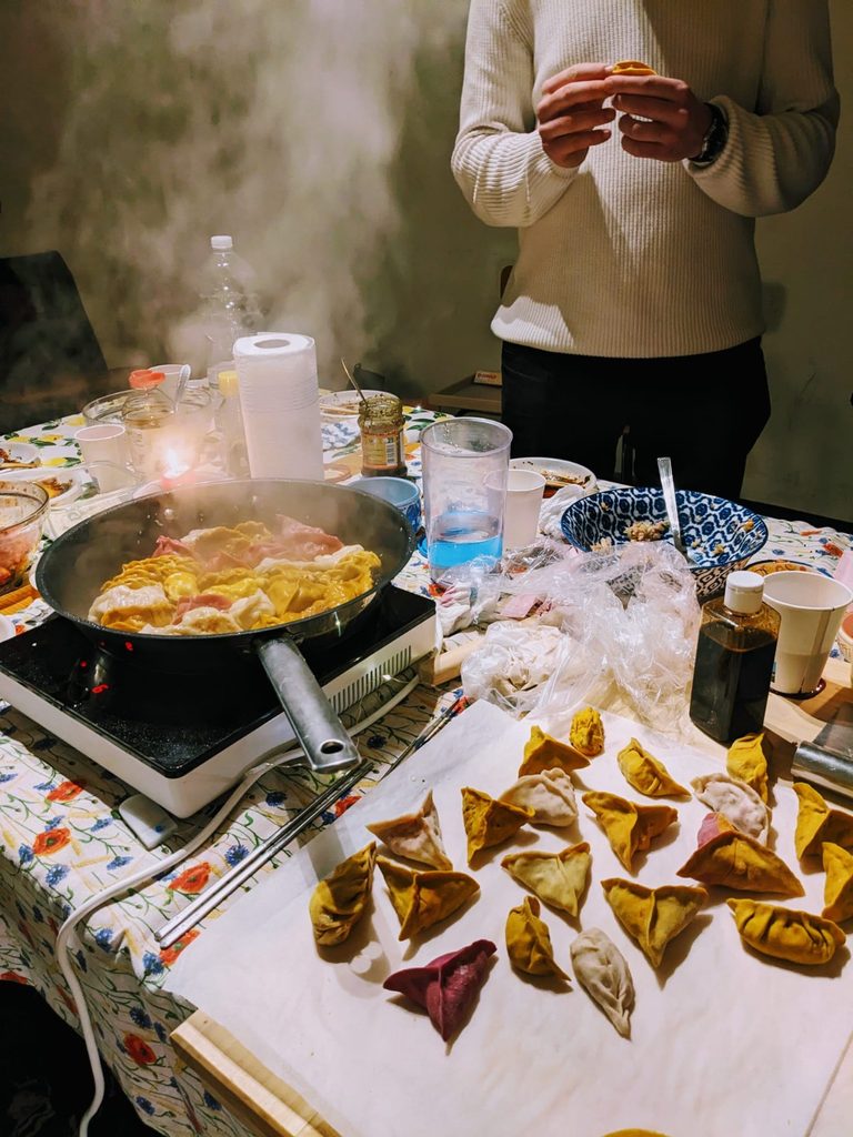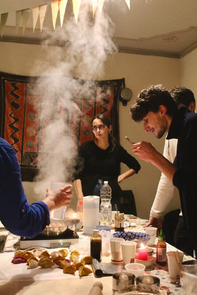 Il “calore domestico” è, infatti, l’ingrediente principale delle cene preparate insieme da persone che il più delle volte non si conoscono tra loro. Ogni volta c’è un tema/piatto/Paese diverso: il primo a dicembre scorso si è concentrato sui dumpling cinesi il prossimo sarà tutto colombiano. È una situazione super informale dove non ci sono particolari regole né bisogna avere conoscenze pregresse o essere pratici di cucina: solo iscriversi per tempo con una piccola quota (perché i posti sono pochi), avere voglia di stare in compagnia e curiosità.