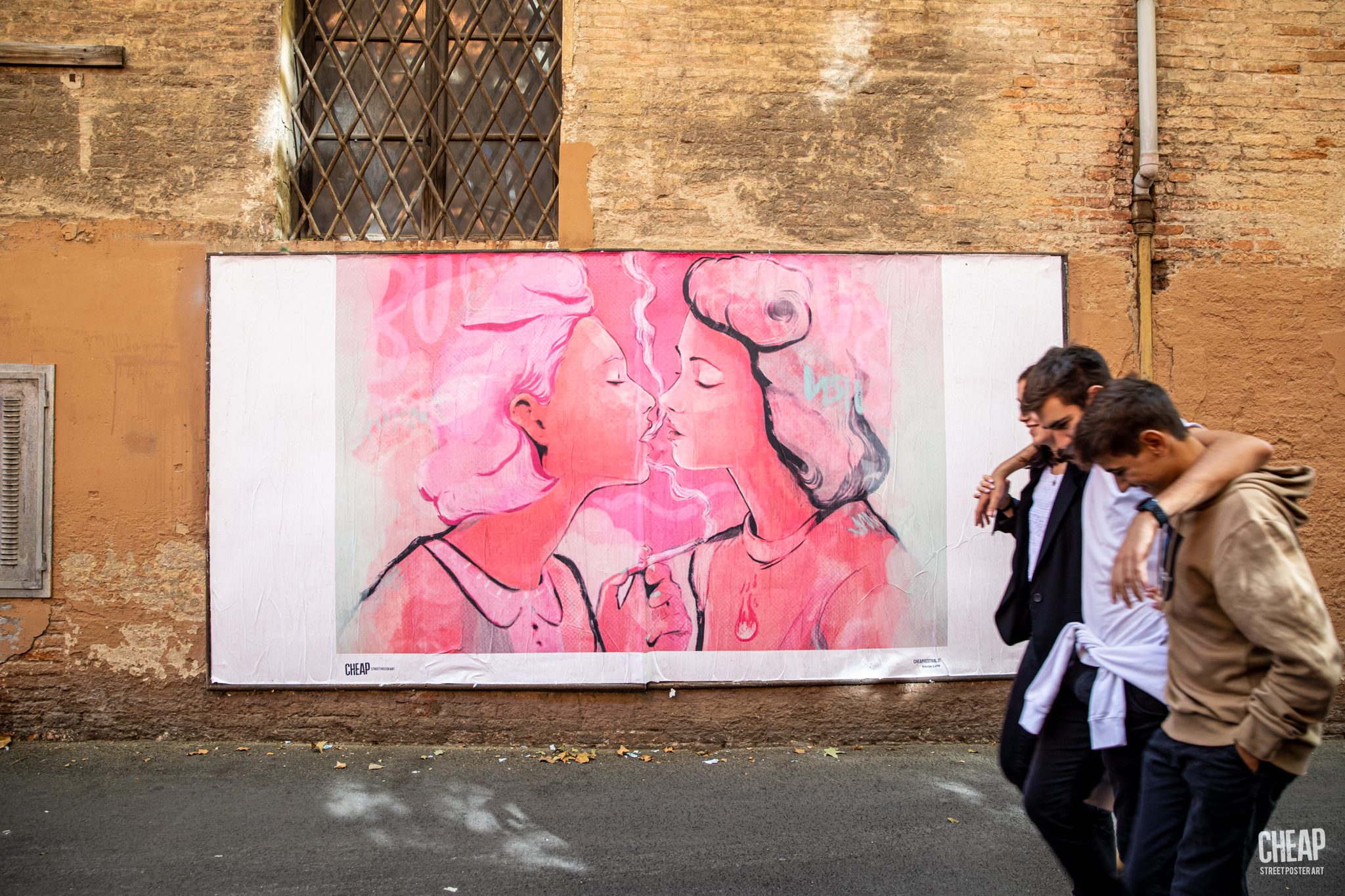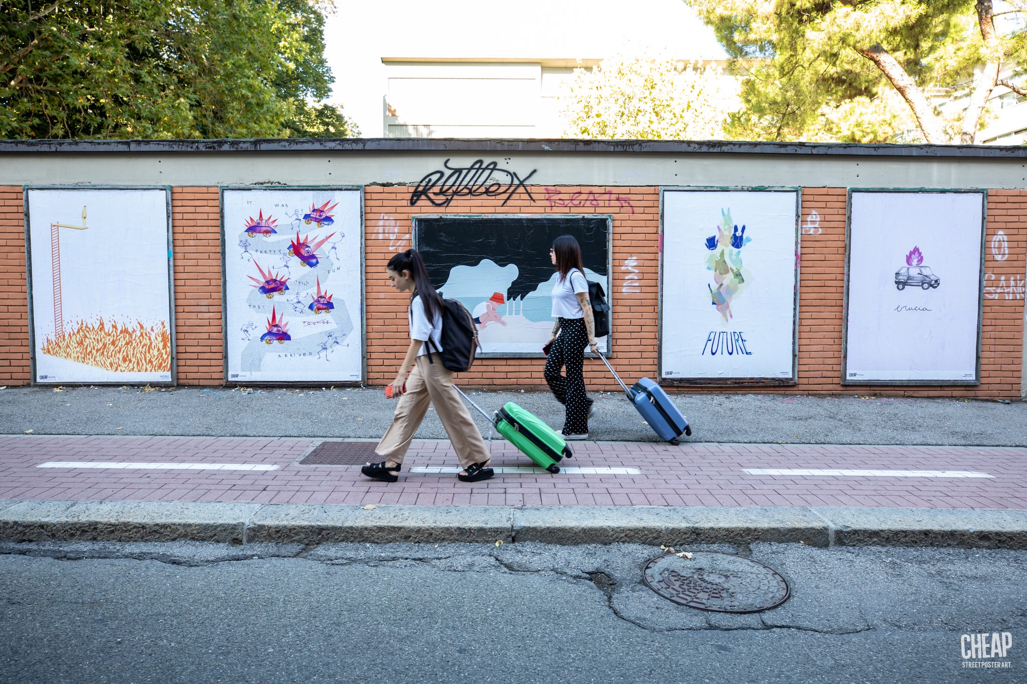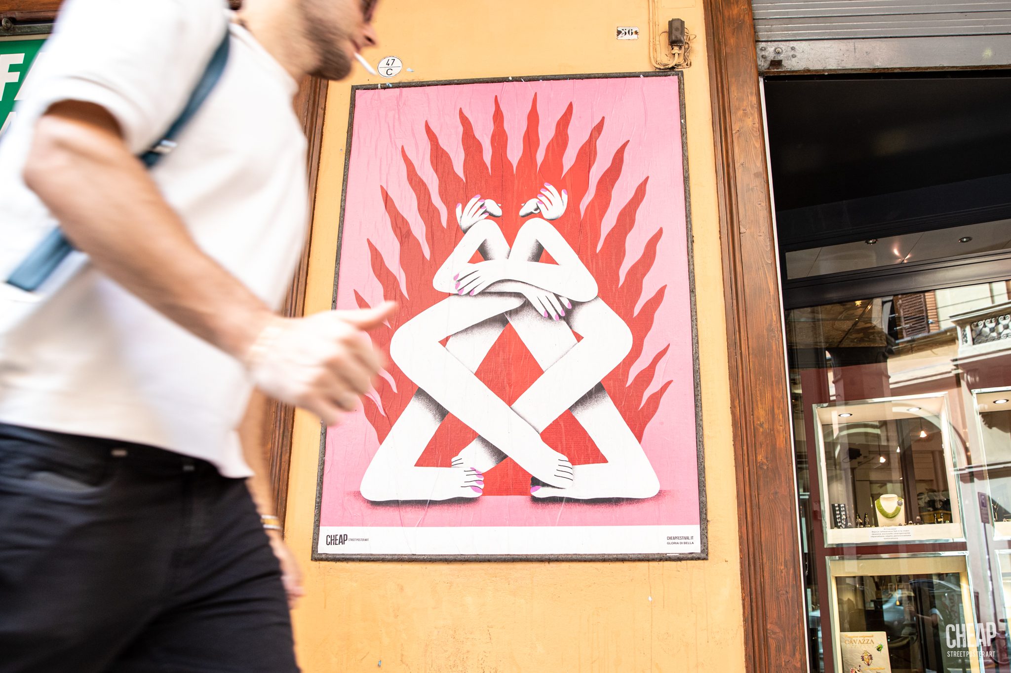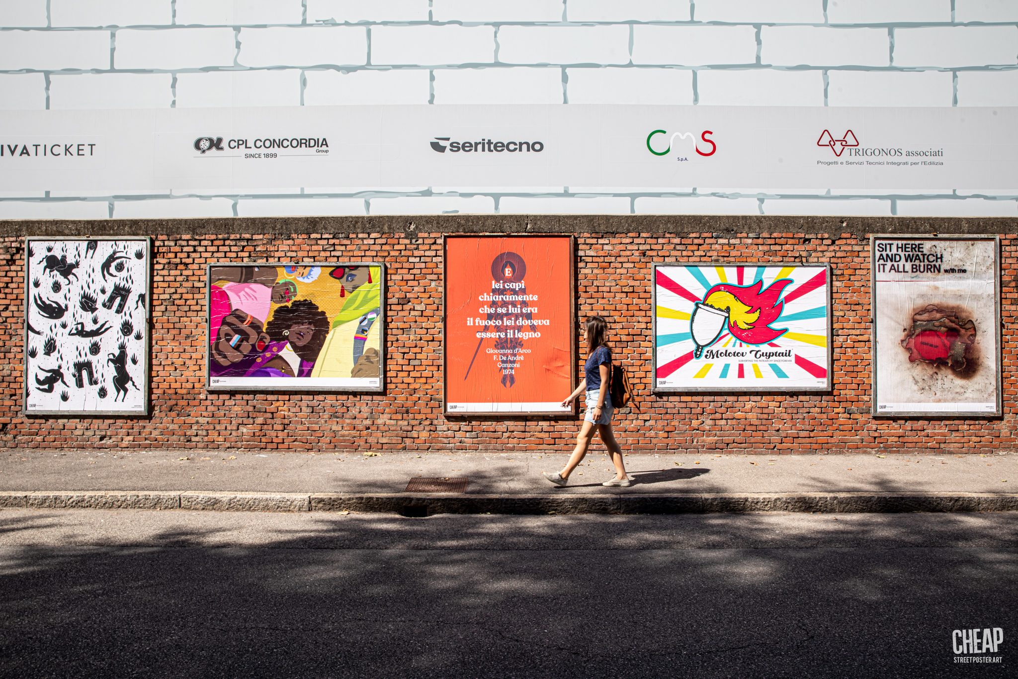 Fiamme che richiamano l’emergenza climatica o un presente distopico, fiamme di rabbia che assalgono il potere, i soldi, le banche, ma anche fiamme che sono simbolo di lotta, d’amore o di idee nuove. “On Fire” è il tema della nuova “call for artist” di CHEAP grazie alla quale sono state selezionate 150 opere – a fronte delle 1000 candidature arrivate – trasformate nei poster che in questi giorni hanno invaso la città.