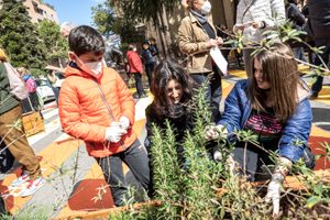 Si tratta di un’area di circa 300 mq pedonalizzata e liberata dal traffico, attraverso l’utilizzo di verniciature colorate a terra e segnaletica, allestita con rastrelliere, panche a semicerchio, giochi disegnati, scritte, panchine e sedute a sfera e semi-sfera in cemento, vasche in legno contenenti piante officinali e ornamentali.