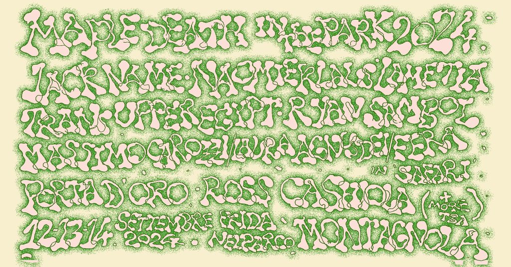 Per il quarto anno l’etichetta bolognese Maple Death Rercords porta nel Parco della Montagnola uno spaccato musicale che incarna la sua peculiare attitudine indipendente tra nomi che fanno parte del catalogo e altri agganciati grazie agli infiniti scambi e relazioni sviluppatesi negli anni a livello nazionale e internazionale. Tre giornate e due palchi per vedere dal vivo gente che arriva anche da oltreoceano, come Jack Name, artista di Los Angeles che fa parte di quel collettivo che mette insieme dai White Fence a Cindy Lee e che torna in Europa dopo molto tempo. Una chicca di quest’edizione è il trio inedito formato da Massimo Carozzi, Laura Agnusdei e Fera che presentano per la prima volta lo spettacolo “Safari” incentrato sulle registrazioni di Carozzi durante i suoi viaggi in Africa. Noi già speriamo che diventi un disco. Altro nome da segnare è quello di Naomie Klaus, artista di Bruxelles abbastanza indefinibile che si muove tra la musica e il visivo con dei live fortemente performativi. E poi i Trans Upper Egypt – progetto di Manu degli Holiday Inn e Leo dei WOW – sia perché è raro vederli dal vivo, sia perché No Dub uscito nel 2024 per Maple Death spacca di brutto. E poi, ancora: Ryan Sambol e Ross Cashiola da Austin, il progetto di Giacomo Stefanini Porta D’Oro, Lametia da Torino e molti altri.