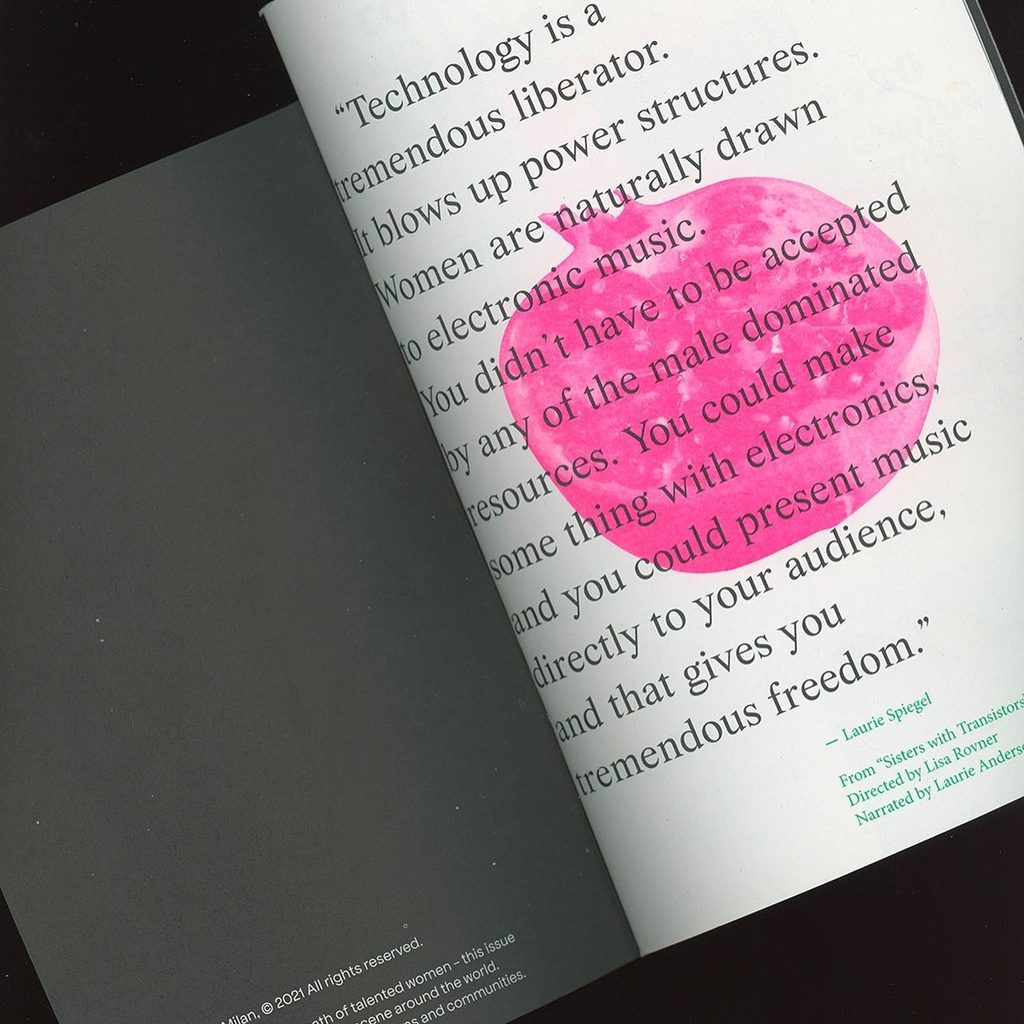 Il primo numero di Kore venne lanciato alla Triennale Milano nel giugno 2021: un magazine cartaceo e digitale che raccontava i territori underground in seno alla ricerca musicale e alle sperimentazioni contemporanee nell’elettronica compiute da artiste come Lena Willikens e Cindy Savalas, Mutant Radio Platform e Futura Booking Agency. Si proiettò Sister with Transistors (il docufilm di Lisa Rovner e narrato da Laurie Anderson) che racconta le pioniere della musica elettronica), con una performance di Eva Geist. Insomma, la domanda riguarda i what if: cosa succederebbe se si guardasse alla produzione culturale e creativa se si facesse attenzione a ciò che esula dal classico piedistallo maschile? Cosa significa, allora, essere e diventare donne in una cultura fallocratica?