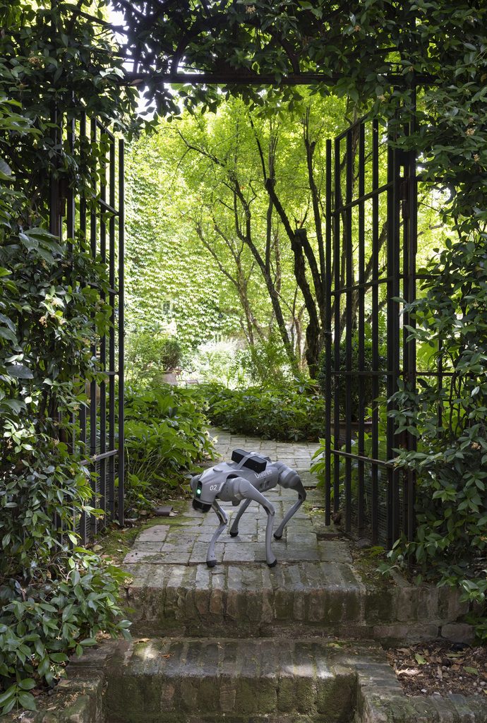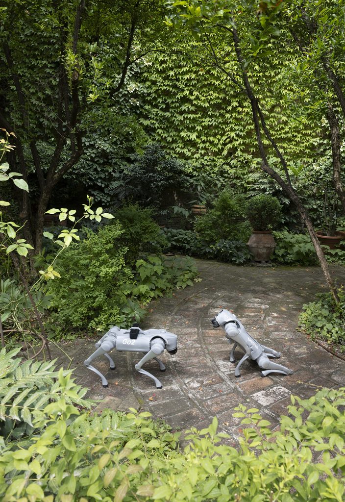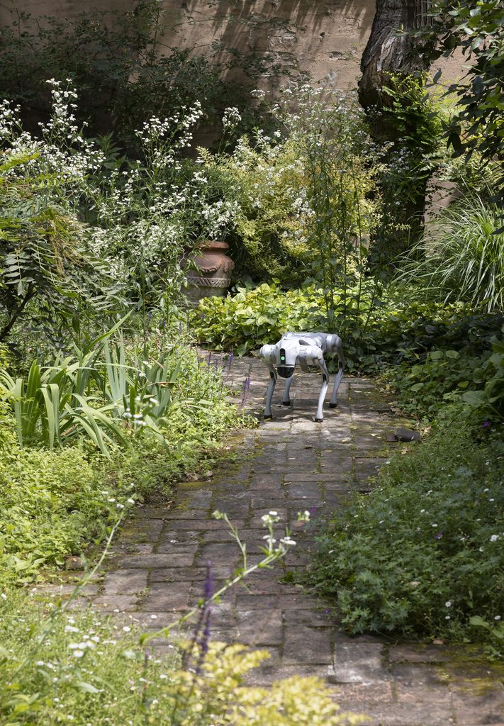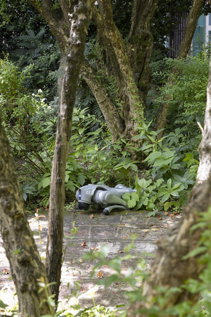 Questa scelta non è solo un commento sulle nuove tecnologie, ma anche una riflessione sul rapporto tra umani e animali, nonché sulla natura dell’empatia e dell’affetto in un’era dominata dalla robotica avanzata. Inoltre, ULTRAMORE apre un dialogo significativo con le teorie antispeciste, interrogando il nostro rapporto con gli animali e la natura del loro sfruttamento. I cani robotici, in quanto sostituti dei loro omologhi biologici, invitano a riflettere sulle pratiche di dominazione e sulla possibilità di un futuro in cui la tecnologia possa ridurre la sofferenza animale. Questo tema risuona profondamente con le riflessioni di Donna Haraway, che propone una visione del mondo in cui umani e non umani coesistono in simbiosi. Haraway, con il suo concetto di “companion species,” evidenzia come le relazioni interspecie possano essere arricchenti e reciprocamente trasformative, una prospettiva che Benassi sembra abbracciare attraverso la sua opera.