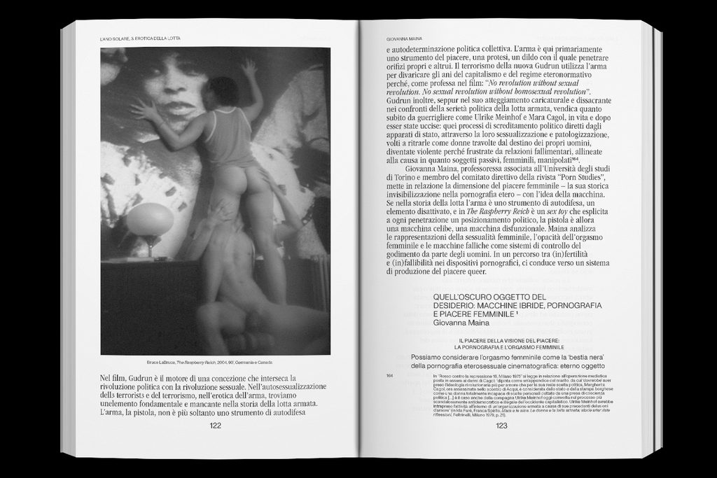 Noi siamo qui: inizio del 2022 e abbiamo questo libro tra le mani, L’Ano Solare, che non è un compendio del percorso effettuato, ma è un capitolo di esso. Basta sfogliare la sua massa corpulenta per sentir uscire un gran vociare, una stanza affollata in cui coesistono i protagonisti delle tappe precedenti, dalle forme e location più disparate: si parte infatti dal 2019 con They are the Sun, mostra, performance, screening con Jacopo Miliani, Caterina De Nicola, Tomboys Don’t Cry, a Milano presso la sede in Giambellino de Il Colorificio e con la pubblicazione de L’Idillio d’Orta, Appunti per una pratica anale, in occasione dell’edizione di Sprint. Poi il 2020 (anno ricco mi ci ficco) con la lecture performance di Luca Scarlini: L’idillio d’Orta, sempre a Il Colorificio, così come Ossesso, mostra e performance di Giulia Crispiani. E infine il Festival Postporno Cinemapocalissi a Venezia, al Teatrino di Palazzo Grassi con tantissim* artist* e proiezioni (volete l’orda? Eccola: Kathy Acker e Alan Sondheim, AltSHIFT, Xavier Baert, Maria Basura, Amber Bemak, Cade, Marc Caro, Pau- lX Castello, Shu Lea Cheang, Colectivo CENEx, Linda Porn, Ediyporn, Lucía Egaña Rojas, Jean Genet, Tessa Hughes-Freeland, Barbara Hammer, Bruce LaBruce, Del LaGrace Volcano, Dylan Meade, Eric Pussyboy e Abigail GnashLlaveria, Joanna Rytel, Annie Sprinkle, Wong Ping).