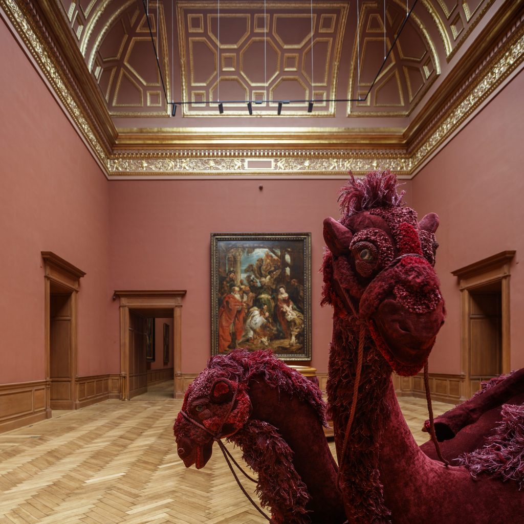 Il secondo sogno che si realizza al KMSKA è invece tutta una questione di ordine. Di solito sei tu che scegli di vagare e perderti per i musei, di prendere i tuoi amici per mano e di imitare quella scena di Godard di Bande à part, ma in realtà sai perfettamente che ci sarebbe una linea cronologica da seguire, che non guarda in faccia la rilevanza del pittore o di quel dipinto nella serie, l’ennesima Madonna col Bambino, una noia mortale. Con il nuovo restauro, si è deciso di ordinare le opere epistemicamente, dando un tema a una sala e racchiudendoci le opere che c’entrano, mettendole in dialogo tra loro. Così, nel piano dedicato alle opere degli Old masters (cioè quelle pre-moderne prodotte prima del 1880), c’erano alcune opere raggruppate secondo il tema dell’orizzonte, che ritraevano un paesaggio inteso concettualmente come quello rinascimentale e paesaggi notturni di Peter Paul Rubens, di altri della scuola fiamminga come Lucas van Valckenborch (citato affettuosamente da Sebald in Austerlitz) e poi un Magritte. Nella sala dedicata all’impotenza, busti di capi oppressori spagnoli del Settecento vengono messi davanti al King of Egypt II di Basquiat. I colori delle sale dedicate agli Old masters, poi, seguono le sfumature preferite dei fiamminghi, rosa antico, rosso vermiglio e un verde oliva. In una sala ci sono i sensori a realtà aumentata che ti spiegano come si dipingeva nelle botteghe fiamminghe ai tempi.