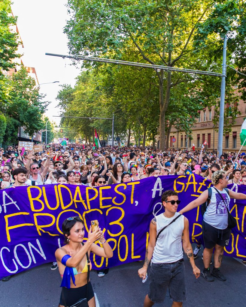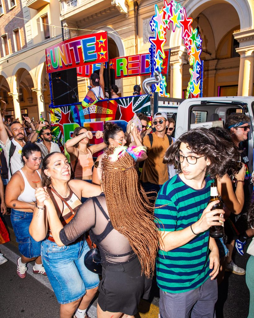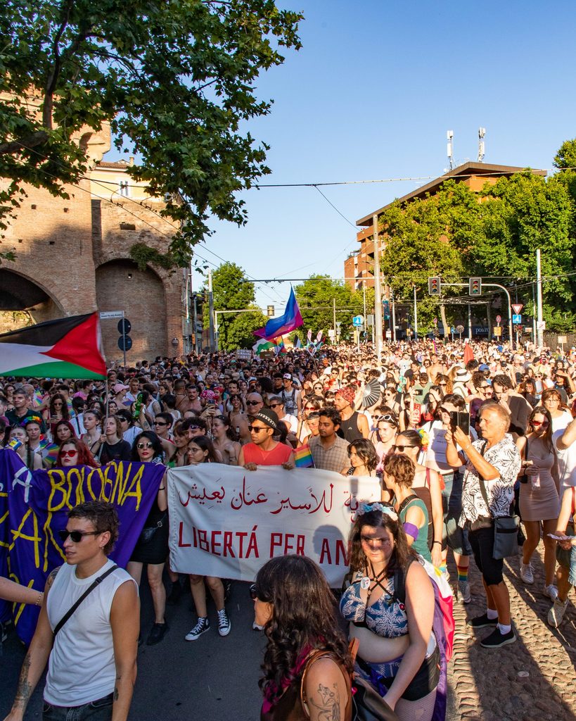 Quasi 40 mila persone hanno preso parte sabato 28 giugno al Rivolta Pride di Bologna, la manifestazione LGBTQIA+ autogestita e costruita attraverso un lungo percorso di assemblee pubbliche cittadine. Il corteo, svoltosi in concomitanza e solidarietà con il Budapest Pride, ha attraversato la città per concludersi al Parco della Montagnola tra carri musicali, cori e cartelli colorati. Le attiviste, hanno rivendicato ancora una volta un Pride radicale, centrato sulle lotte contro la repressione del governo Meloni, la solidarietà internazionale e, in particolare, con la Palestina: “Israele e i suoi sostenitori stanno vergognosamente cercando di usare la nostra bandiera, i nostri diritti e i diritti delle donne per giustificare la loro politica coloniale e genocida, e noi questo non lo permetteremo: non in nostro nome!” si legge nel documento politico.