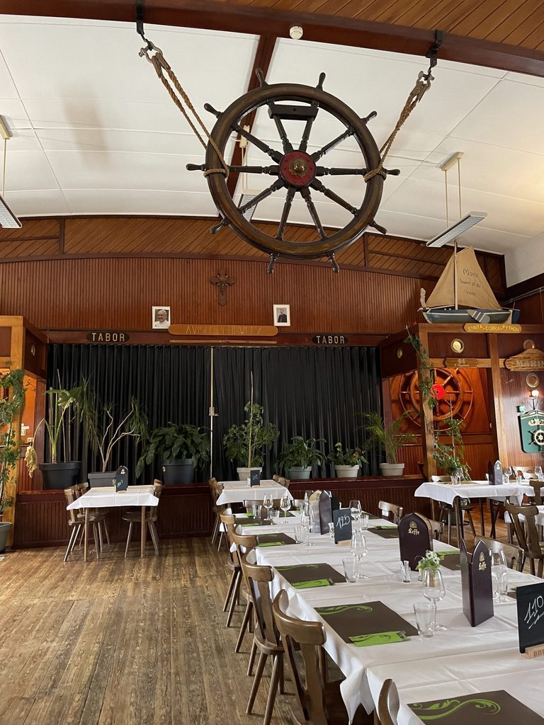 Spingendosi ancora più a Nord e pedalando affianco al fiume, col vento baltico che scompiglia con troppa forza i capelli, si incappa nel Red Star Line Museum, dedicato alla storia di immigrazione della città, che tra il 1873 e il 1934 fungeva da ponte con gli Stati Uniti. Qui partivano infatti quelle navi che poi arrivavano a Ellis Island a New York e il museo racconta la storia di quelle persone che sono partite, dei sogni che avevano nelle loro valigette che sono ora in mostra. Chiedo alla guida di spingerci ancora un po’ più su, perché c’è un edificio che da lontano e con meno 3,5 gradi nell’occhio destro proprio non riesco a capire. Attraversiamo il Mexicobrug, un ponte strettissimo dove una volta passavano anche i treni e che gira ancora con la ruota. Scopro che per aprirsi ci mette qualcosa come 40 minuti, ragione per cui ora resta per lo più giù, spiegato. Arriviamo e scopriamo che quell’edificio è in realtà una barca, la Kerkship St. Josef, cioè una barca-chiesa-ristorante di melvilliana memoria che viene utilizzata in settimana per feste e cene, e poi la domenica ospita le funzioni religiose.