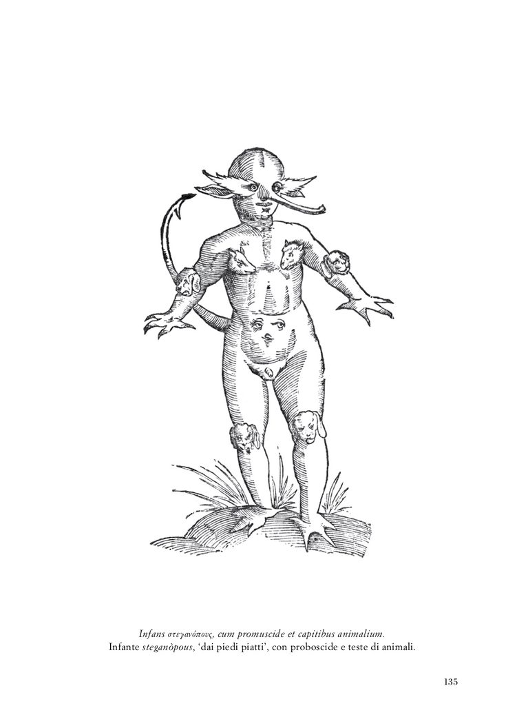 Il volume, a cura di Lorenzo Peka, dopo un’ampia introduzione sull’essere umano e le sue curiosità, si apre a un’approfondita indagine sul concetto di mostro, sulle varietà di creature mostruose umane, animali e vegetali e sui fenomeni celesti più inusuali, indagandone le origini e corredando ogni caso in esame di descrizioni peculiari e curiosità storiche. Segue una vasta rassegna di singoli mostri, raffigurati in un centinaio di dettagliate xilografie: dalle creature mitologiche a incredibili casi di malformazioni, passando per ogni tipo di ibrido e di aberrazione. Il tutto raccontato con rigore espositivo ma anche con i frequenti richiami al soprannaturale e alla demonologia tipici dell’epoca.