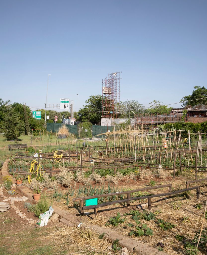 Tra la stazione Tiburtina e l’arteria della Prenestina, Casal Bertone lo definiamo spesso come un terrain vague, una zona ibrida, con una forte connotazione industriale novecentesca, dove però si riconoscono elementi architettonici eterogenei – la nuova sede BNP e le case popolari per esempio – insieme ad innesti spontanei di verde urbano, come gli orti urbani sociali di Villaggio 95 a ridosso dell’A24, o la grande area intorno al lago dell’Ex Snia: tutti aspetti che sottolineano il potenziale inespresso di trasformazione, anche rispetto a nuove modalità e velocità di cambiamento. Come punto di intersezione di realtà molto diverse, questo quartiere ha un carattere scomposto e non mostra un’identità chiara: proprio per questo crediamo possa essere occasione di sperimentazione di uno nuovo sviluppo urbano, su cui come studio stiamo lavorando da tempo.