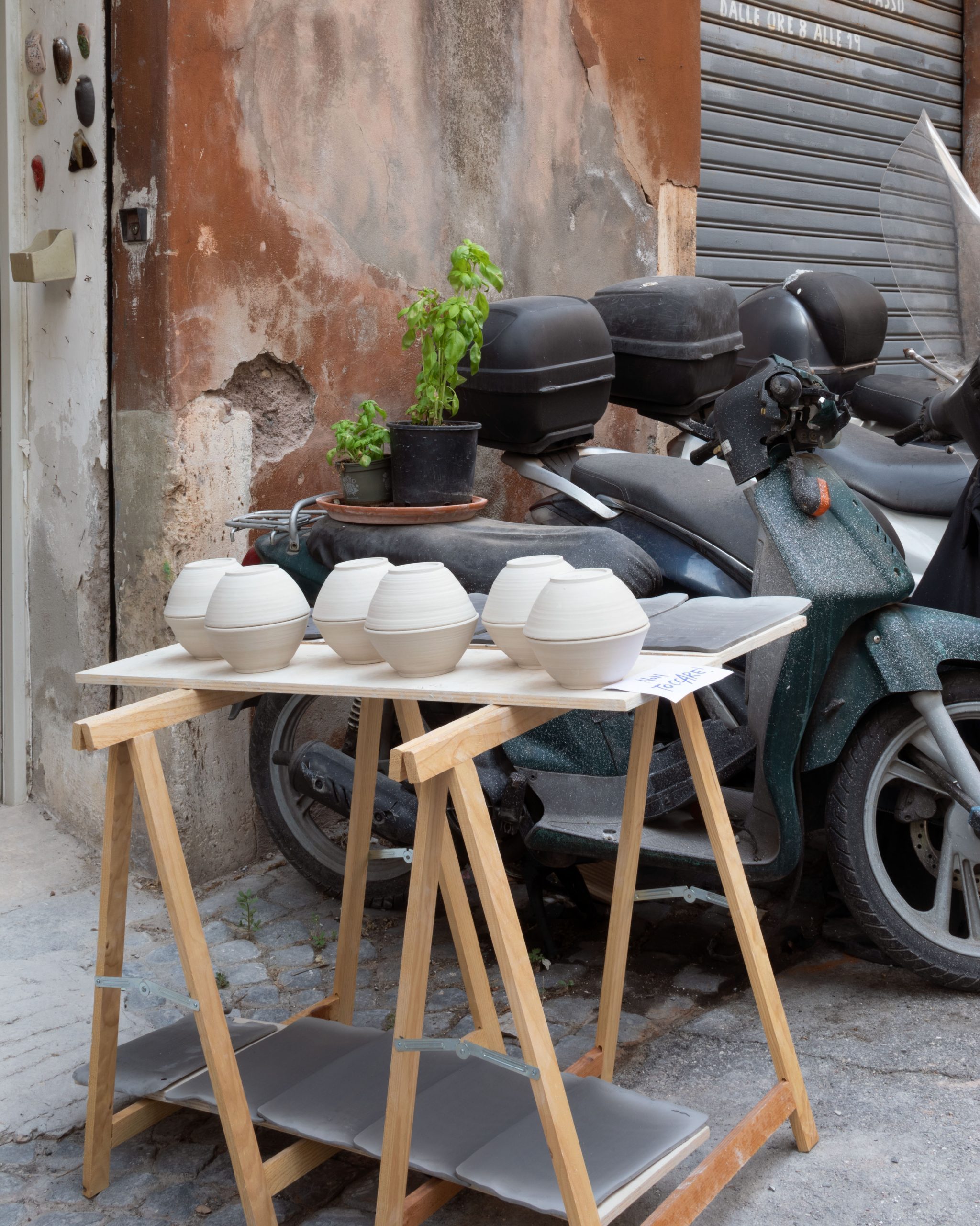 “Via in Selci è il rione Monti ancora non assaltato dal turismo globalizzato, è ciò che ci ha fatto innamorare, tra meccanici e studi di architettura. Perché c’è qualcosa che torna, tra la riparazione e la creazione. Una cultura manuale che è rimasta sulla superficie dei muri e dei ciottoli della via, e che si manifesta ad esempio nel laboratorio POTS, una piccola bottega dove si tengono corsi di ceramica artigianale. E in quanto manuale costituita anche dalle sue naturali imperfezioni; come l’architettura che ci piace.