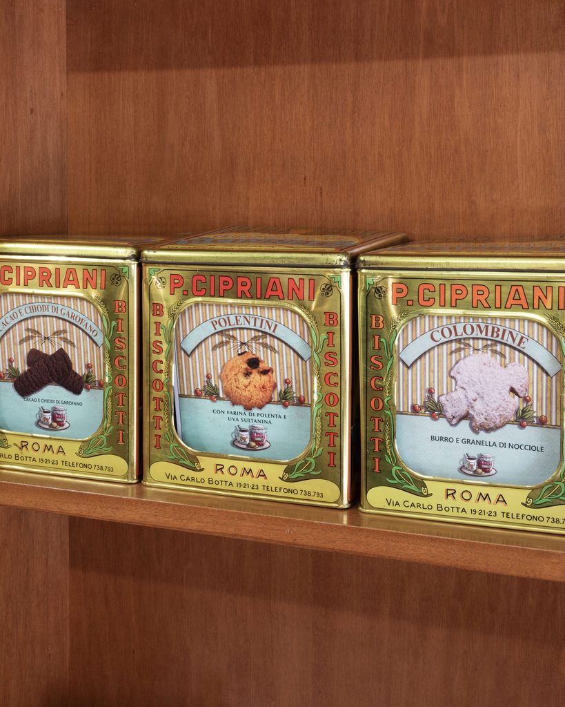 Il baretto old style, Licenza 93, con l’insegna a lettere estruse di una volta, in color arancio anni Settanta, pochi tavolini in legno all’aperto e un ombrellone che fa da ombra allo spritz più genuino e informale del rione, oltre all’immancabile dose di tramezzini. Oppure il celebrato Drink Kong, aperto da pochi anni, che ha conquistato la capitale con la bontà (e la indecifrabilità) dei suoi cocktail. Altre chicche del quartiere, il negozio di dischi e vinili, Millerecords, un archivio ricchissimo di musica in cui Alessandro si orienta con una memoria sorprendente; o la biscotteria Cipriani, di cui adoriamo i biscotti e le e antiche latte: il divertimento per noi è pescare da ciascuna latta il proprio biscotto preferito e comporre su misura la merenda.