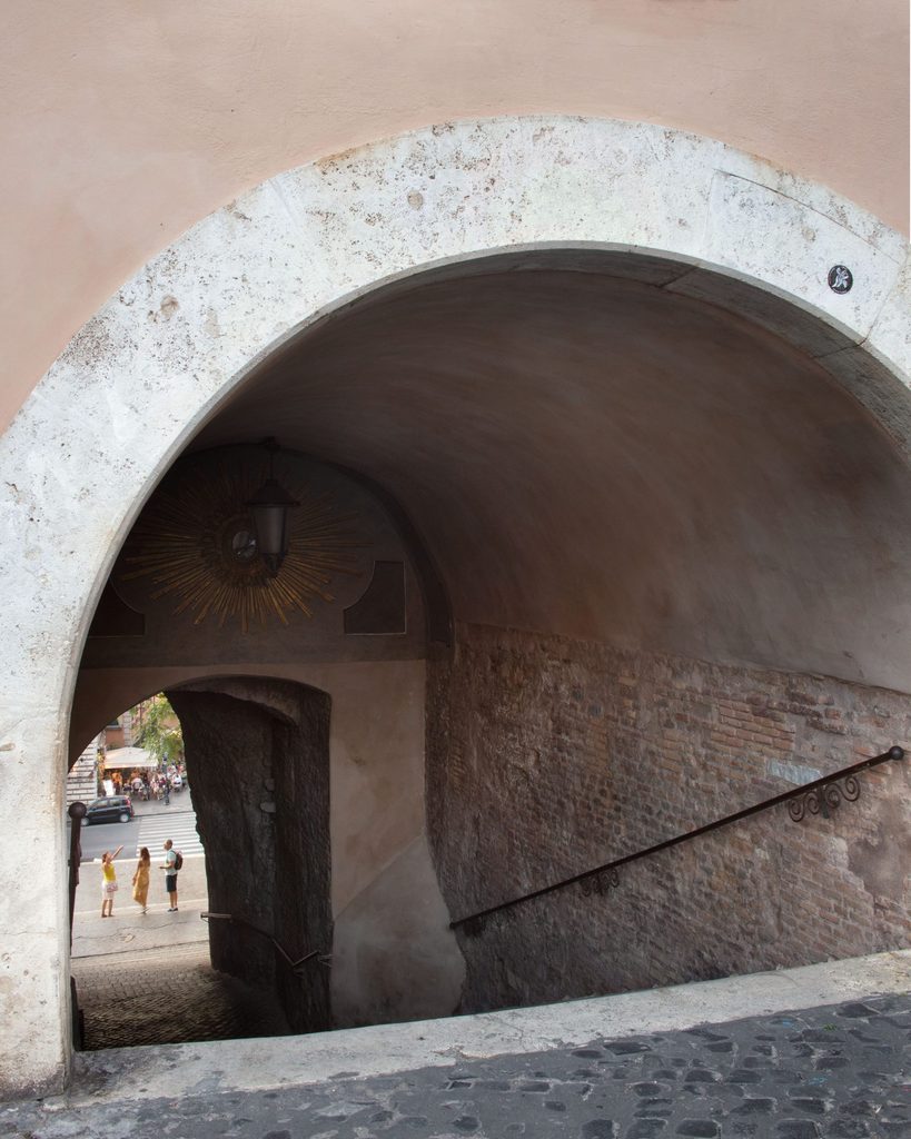 in seguito murate. Gli elementi si sovrappongono in un ordine apparentemente casuale e raccontano storie ed epoche diverse, e ogni volta sembra di scorgere un dettaglio diverso. Questo è poi un angolo di quartiere in salita, fatto di scale: quella di via di Monte Polacco che conduce a via delle Sette Sale e alla Facoltà di Ingegneria, o la Scalinata Borgia, che da via Cavour ci porta dritti alla Chiesa di San Pietro in Vincoli.