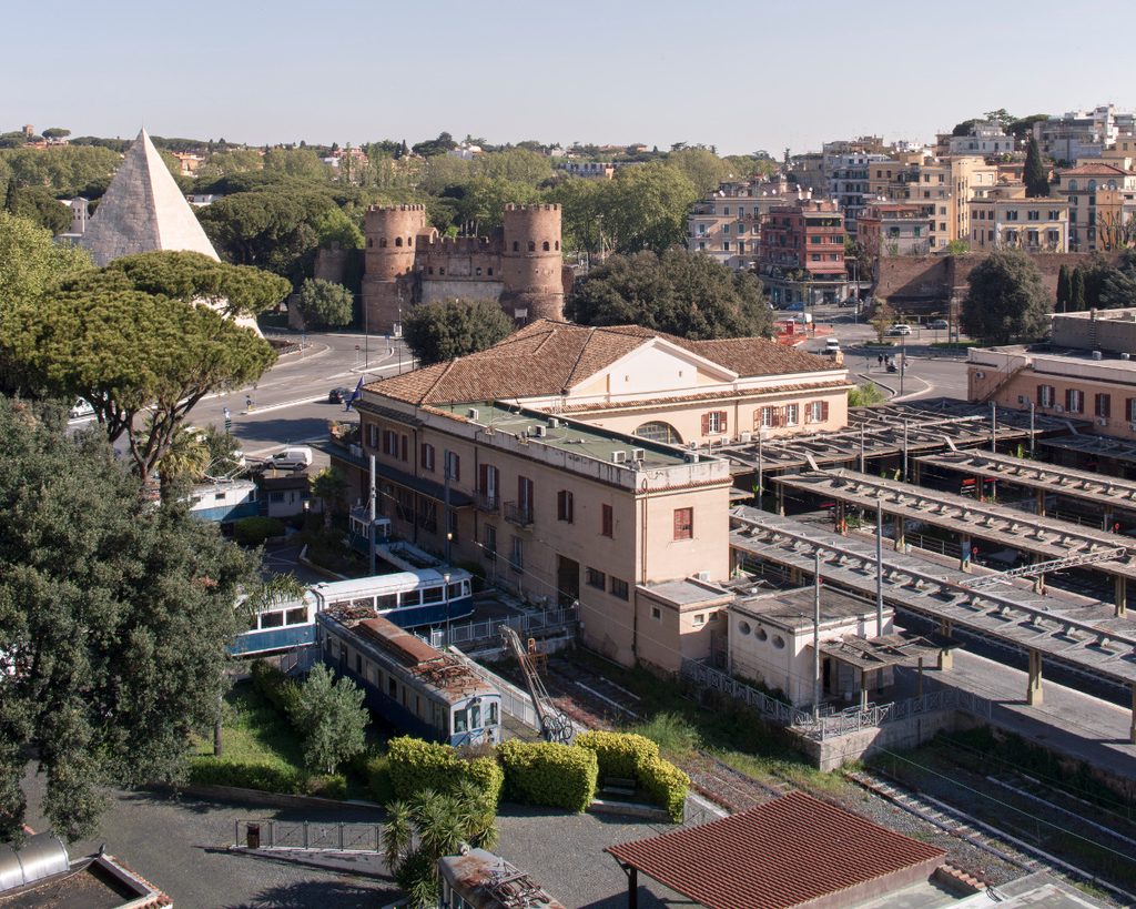 Gli ultimi due anni pandemici sono stati caratterizzati da dinamiche e movimenti agli antipodi: se da un lato la diffusione e la cura vaccinale del Covid hanno rimarcato una certa irreversibilità dei processi di globalizzazione, dall’altro il tempo di resilienza trascorso tra questi due momenti ha riportato tutti con forza a una dimensione iperlocale: quella dell’appartamento, delle strade attorno alla propria casa, dei quartieri, fino a riscoprire la città come una somma di unità e reti. Proprio su questo terreno ZERO ha incontrato nelle ultime settimane il lavoro di Scenario, realtà a cavallo tra Roma e Berlino che indaga il ruolo dell’immagine fotografica nella cultura e nella divulgazione architettonica e urbana, ampliandone la consapevolezza. Da questo incontro è nato Luci su Roma, un progetto editoriale che nei prossimi mesi vi porterà in giro per la città attraverso il racconto e le foto di alcuni dei protagonisti della progettazione, della creatività e dell’artigianato di Roma. Il terzo appuntamento è con None, collettivo fondato da Gregorio De Luca Comandini, Mauro Pace e Saverio Villirillo dall’identità progettuale ibrida, che prende le mosse dal design all’architettura fino a porre al centro della propria ricerca il rapporto tra l’uomo e la macchina: “utilizziamo la tecnologia come strumento per creare narrazioni, pratiche, installazioni e mostre, e indaghiamo i nuovi linguaggi che combinano elementi fisici e digitali”. A loro abbiamo chiesto di parlarci dell’area che circonda il loro quartier generale: Ostiense, zona spuria sospesa tra un passato industriale e “controculturale” e un futuro dai contorni ancora sfocati e confusi.
