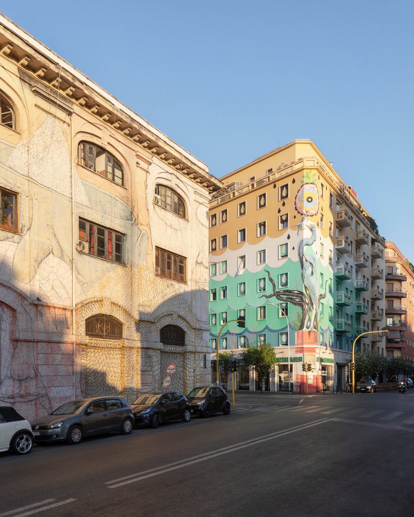 In attesa di riconversione, le ex architetture industriali di Ostiense sono state luogo di diverse occupazioni da parte dei movimenti per la casa e la cultura, pensiamo a Pirateria (Mercati Generali) o Alexis (Acea). Oggi rimane solo la Caserma dell’Aeronautica, l’edificio reso famoso dal grande murales di Blu al cui interno vivono più di 450 persone, che si tiene in vita grazie all’autofinanziamento degli abitanti del luogo. Poi Ostiense è diventata il centro della vita notturna con i locali di Via del Gazometro, come il Sinister Noise e l’Alpheus, e i club di Via Libetta: Goa, Saponeria, Rashomon etc. Prima di diventare un “centro commerciale”, per un lungo periodo anche il grande edificio accanto la stazione Ostiense, l’Air Terminal, ha ospitato concerti e festival. Per molti anni, forse ancora adesso, Ostiense è stata la zona dei manifesti, dei flyer, delle locandine, delle tag. Poi sono arrivati i graffiti e la rigenerazione urbana, attraverso intensi processi di comunicazione e street art.