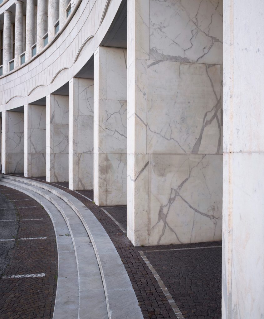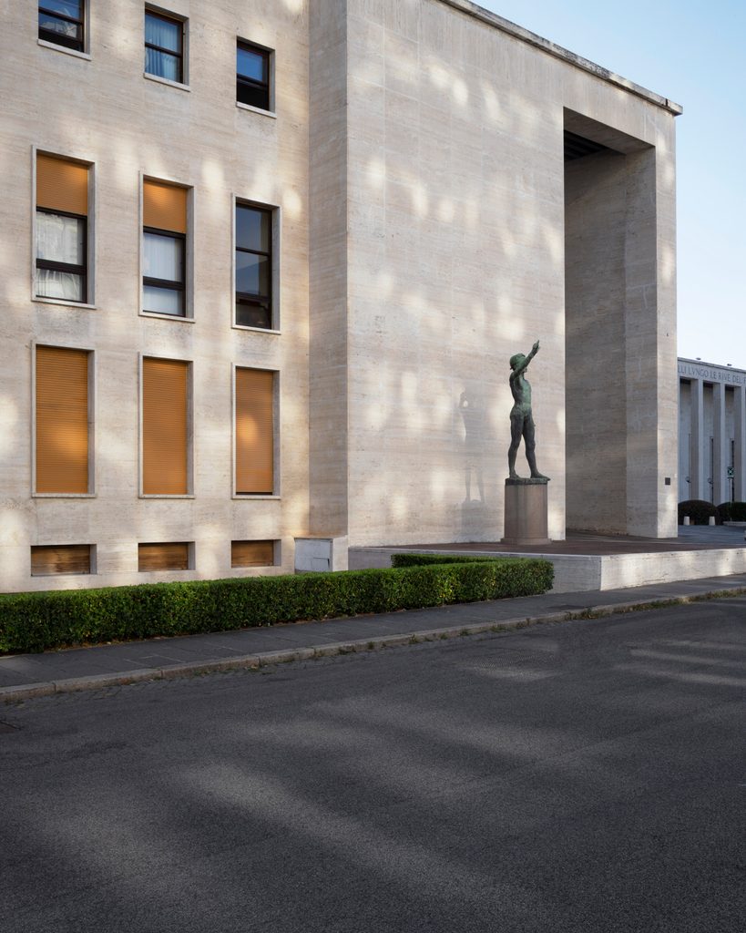 Vivere all’Eur è come vivere in un’altra Roma: geometrie essenziali, strade immense e dritte, forme pure, materia ed archetipi. È un luogo che emana energia, razionalismo e rigore; un brano di città senza tempo, dove tutto è sovradimensionato e porta ancora oggi intatto il peso della propria storia. Forse l’Eur non è un quartiere che consola, con i suoi spazi enormi, l’architettura austera e geometrica, il senso di isolamento e a volte di vuoto che ti sorprende. È un quartiere introspettivo e stimolante, che ti mette in una necessaria condizione di ascolto. Ti sprona, insegnandoti il valore di stare con te stesso.