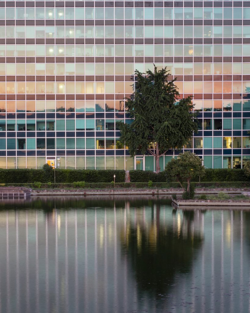 Non ci è facile individuare spot preferiti all’interno del quartiere: l’Eur va osservato in movimento, questa è la potenza della sua architettura, che va scoperta e osservata da diversi punti di vista. Il fascino dei gioco di luci, ombre, prospettive e simmetrie rimane unico. D’un tratto cammini tra i portici di Viale della Civiltà del Lavoro e ti trovi immerso in questa imponenza monumentale, davanti a te il Palazzo dei Congressi con il suo colonnato e alle tue spalle il Palazzo della Civiltà Italiana; attraversi la Cristoforo Colombo con le sue dieci corsie di marcia e ti accorgi della grandezza degli spazi, dell’idea di vuoto, facendoti vivere quella strana sensazione di trovarti in un luogo fuori contesto, quasi “extra-terrestre”.