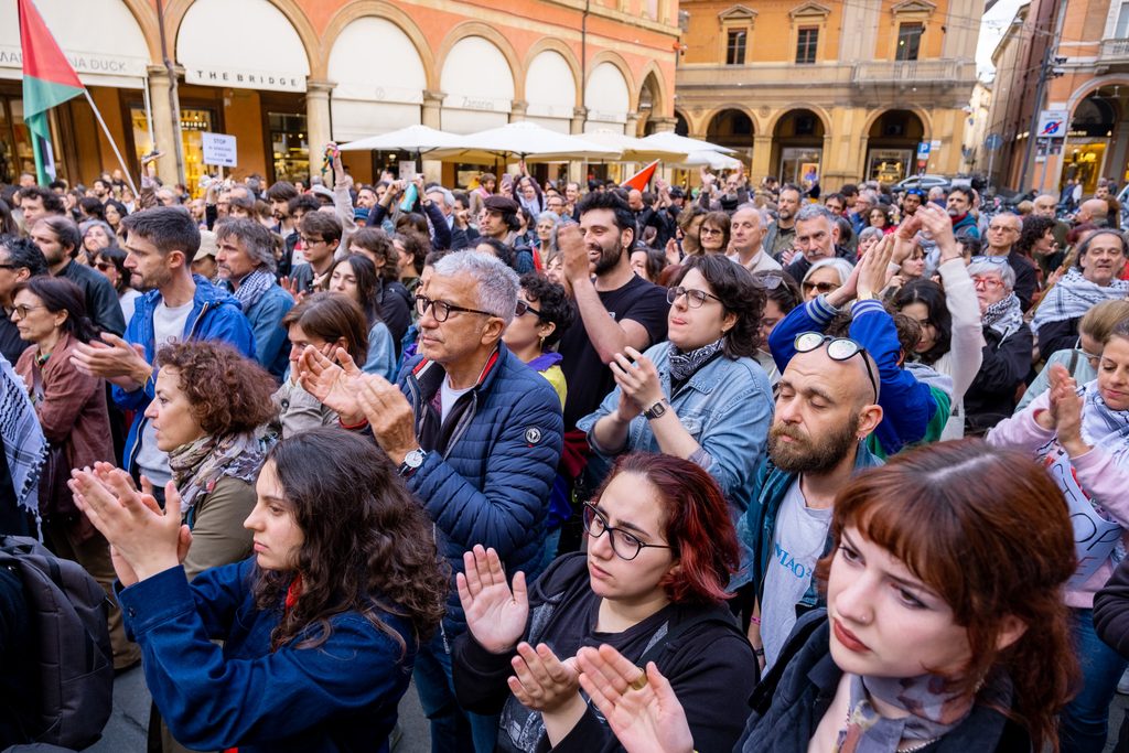 Anche a Bologna, in Piazza Galvani, diverse centinaia di persone tra gruppi di cittadini, associazioni e realtà culturali si sono mobilitate per chiedere un cessate il fuoco immediato e l’imposizione di sanzioni allo stato di Israele, responsabile della morte di oltre 60mila persone e di un assedio che non consente più ai civili stremati di accedere a beni e servizi essenziali. A Gaza, denunciano, non c’è più cibo e acqua, Gaza ha i giorni contati.