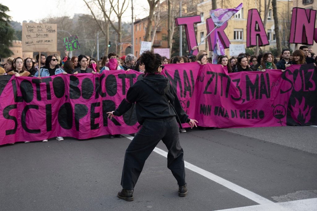 “Chi sostiene la cultura patriarcale – scrivono – parla della sicurezza come ordine, controllo, repressione e punizione. Rispondiamo che la sicurezza è l’educazione alla sessualità, alle emozioni e al consenso come materia curricolare fin dalle primarie. La sicurezza sono i servizi sociali per tuttu, centri antiviolenza femministi con finanziamenti adeguati e strutturali, il diritto alla salute e all’autodeterminazione, l’aborto libero, sicuro gratuito, il supporto ai percorsi di affermazione di genere! La sicurezza è finanziare veri percorsi di autonomia e fuoriuscita dalle relazioni violente, accordare i tempi dei processi penale e civile, rigettare la PAS dai tribunali, fermare la vittimizzazione secondaria. La sicurezza è il salario minimo, stipendi dignitosi e contratti adeguati, il reddito di autodeterminazione. La sicurezza è un piano casa, affitti calmierati, quartieri vivibili con spazi verdi e di socialità, contro la solitudine e l’emarginazione. La nostra sicurezza è riconoscere la cittadinanza alle seconde generazioni, abrogare le leggi sull’immigrazione volte a creare clandestini e clandestine, rompere gli accordi italo-libici, aprire le frontiere e chiudere i CPR in Italia e in Albania. La sicurezza è demilitarizzazione. Scioperiamo contro la guerra perché l’escalation bellica è esponenziale: è orribile realtà nelle vite di milioni di persone: dal genocidio a Gaza e in Cisgiordania, la guerra dilaga in tutto il Medio-Oriente. Spacca l’Europa sul confine russo-ucraino, divampa in Congo e in Sudan. Non vogliamo esserne né vittime, né complici.”