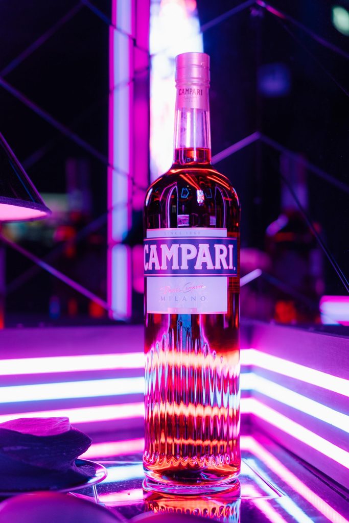 Si celebra il rapporto speciale di un’azienda nata nel 1860 e la città di Milano, oltre che il lancio della nuova bottiglia del bitter più milanese che esista, il Campari appunto. A partire da oggi la bottiglia assume infatti un che di statuario: il logo quasi fosse un bassorilievo dall’etichetta, la firma Davide Campari e la dicitura Milano ben irrobustita, ma soprattutto un elegantissimo “canneté” alla base della bottiglia, dove il vetro prende le sembianze del Duomo. Ideale anche per maneggiare la bottiglia con grip aggiuntivo (non tutti siamo bartender e la impugniamo dal collo), mi viene in mente osservando una delle bottiglie che arredano ogni angolo del locale.