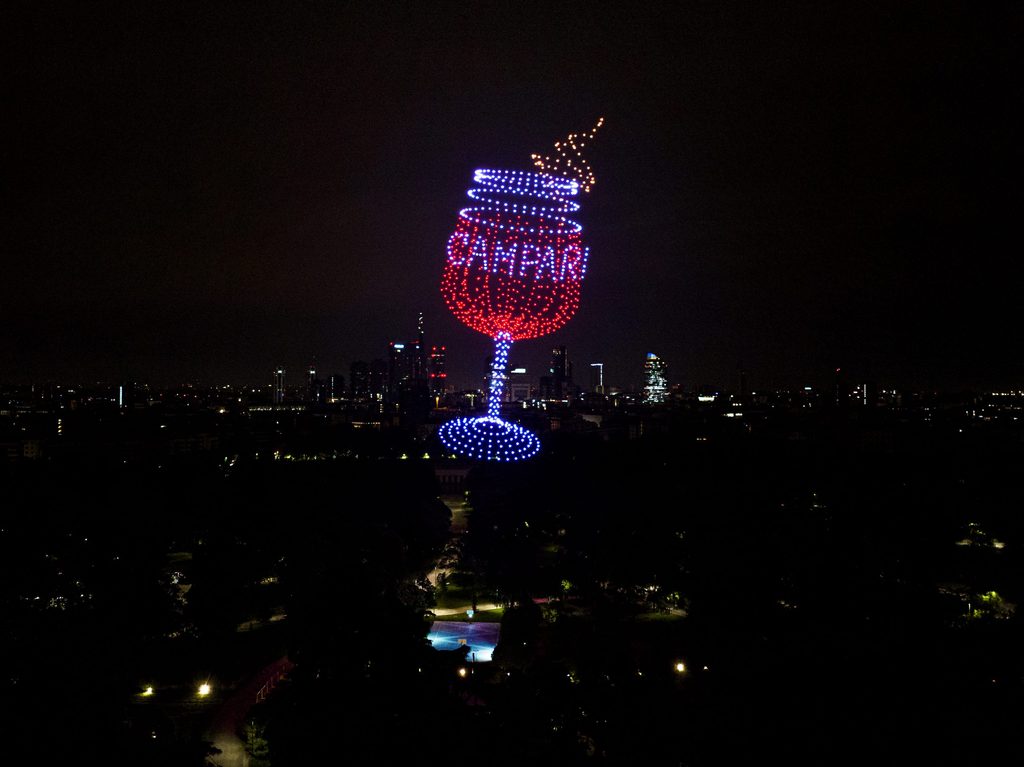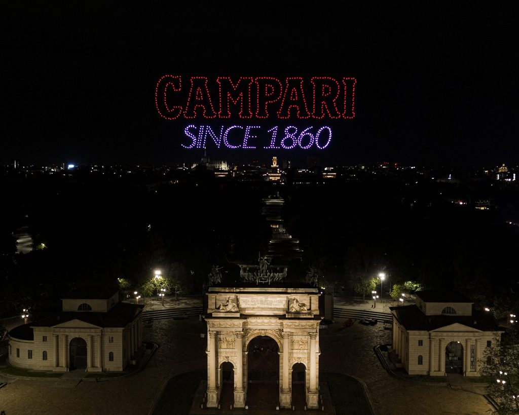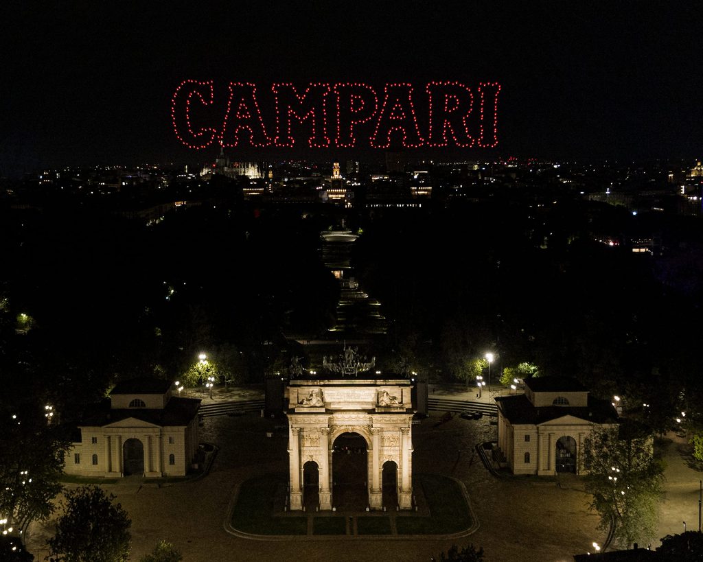 Per il lancio della nuova bottiglia, il bitter meneghino ha organizzato uno show di droni in omaggio alla città e per una notte i piani del Ronin si sono tinti di rosso Campari