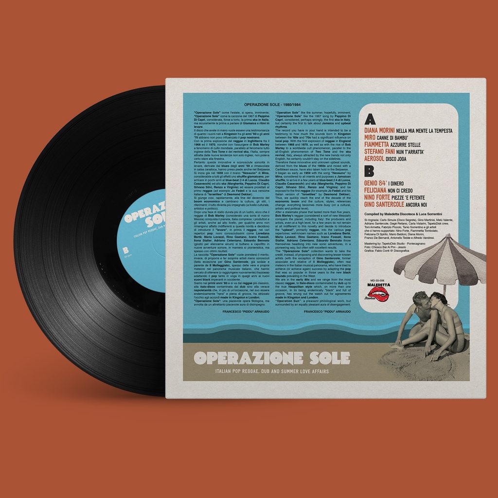 «Operazione Sole nasce come risultato della nostra famelica ricerca di vinili oscuri e rarità a 33 e 45 giri. Da quando abbiamo dato vita a Maledetta Discoteca nel 2019 questa ricerca si è focalizzata molto sulle produzioni italiane. Un paio di anni fa, mentre eravamo in ascolto degli ultimi ritrovamenti, abbiamo notato che c’erano diversi brani con il ritmo in levare. Non stiamo parlando di artisti conosciuti che già sapevamo aver composto brani di matrice reggae – Loredana Bertè, Mattia Bazar, Rino Gaetano, Mario Lavezzi, Lucio Dalla, Battisti, Fossati, etc. – ma di artisti o gruppi meno noti ai più – in qualche caso possiamo dire totalmente sconosciuti – ma non per questo meno validi dal punto di vista dell’arrangiamento e dell’esecuzione. Quel giorno ci è venuta la malsana idea di scavare ulteriormente l’influenza del reggae nel pop italiano e di farci una compilation. Abbiamo parlato del progetto a Luca Sorrentini, enfant prodige del digging italiano – all’epoca aveva 14 anni ma già un background di conoscenze e una collezione di vinili da far paura – che si è subito entusiasmato all’idea e da lì abbiamo iniziato a lavorarci su seriamente. Quindi per rispondere alla domanda, diciamo che nasce prima la volontà di indagare in profondità il genere. Visto il tema poi, la compilation non potevamo che farla uscire in estate.