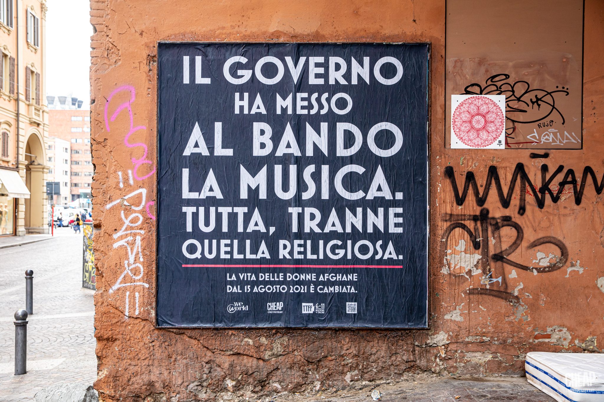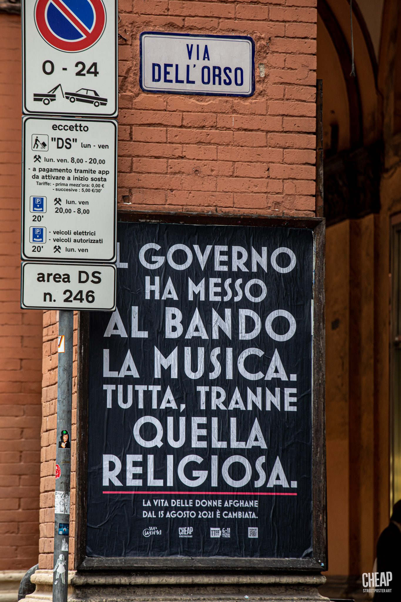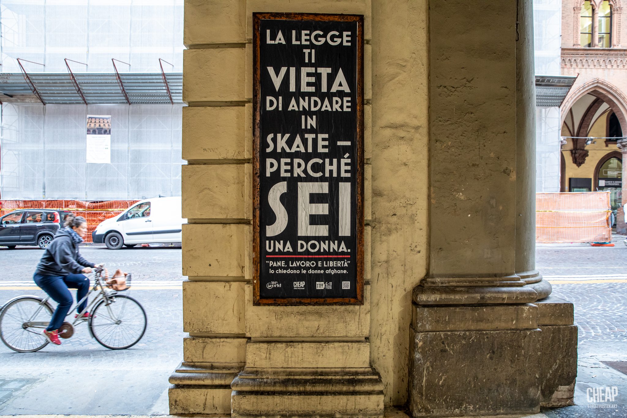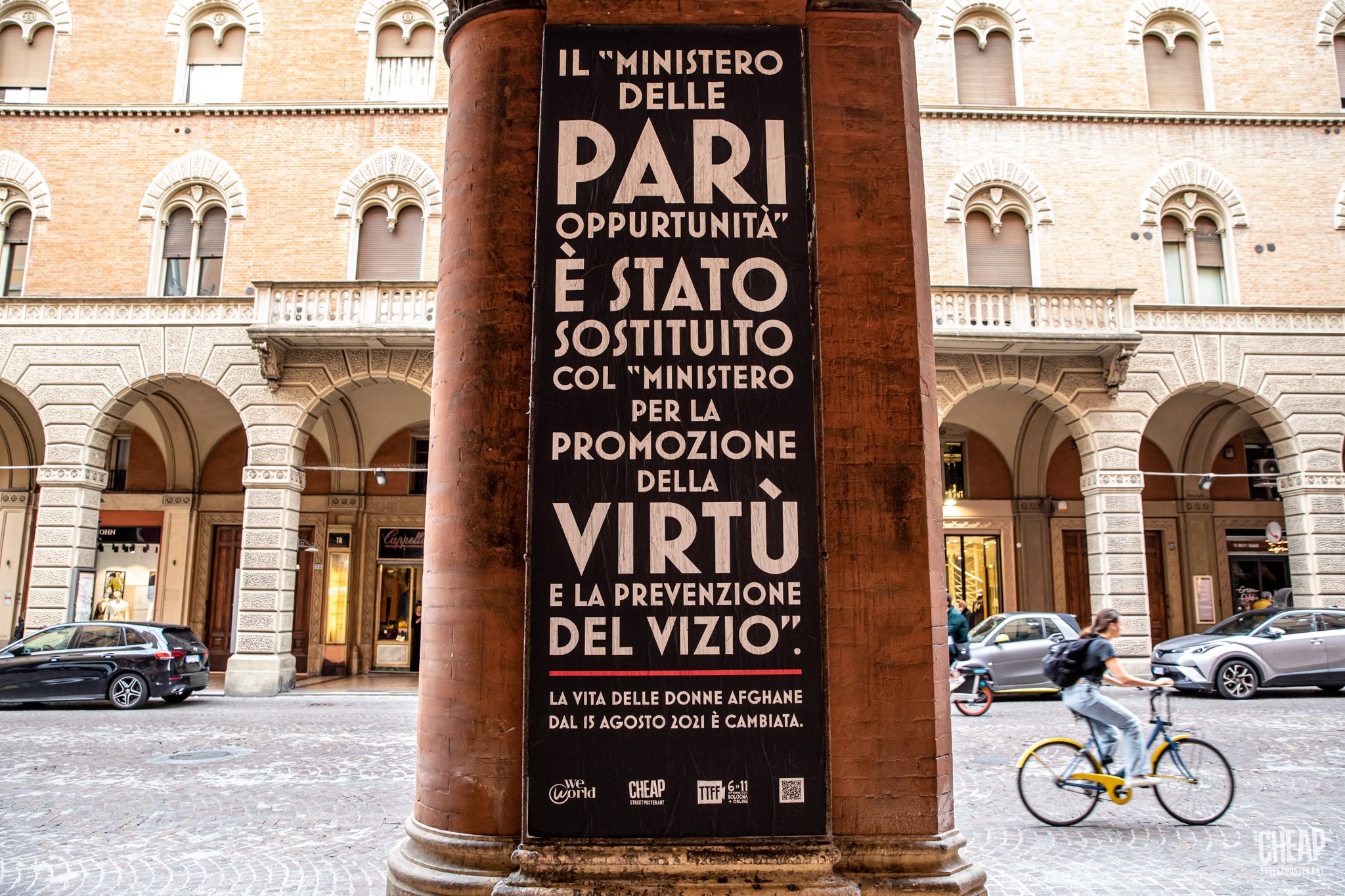 Il nuovo intervento di public art di CHEAP, realizzato insieme a WeWorld, organizzazione che da 50 anni difende i diritti donne e bambine in Italia e nel Mondo, è stato realizzato nel centro storico di Bologna, e sarà visibile per tutto il mese di ottobre nella centralissima Via dell’Indipendenza.
