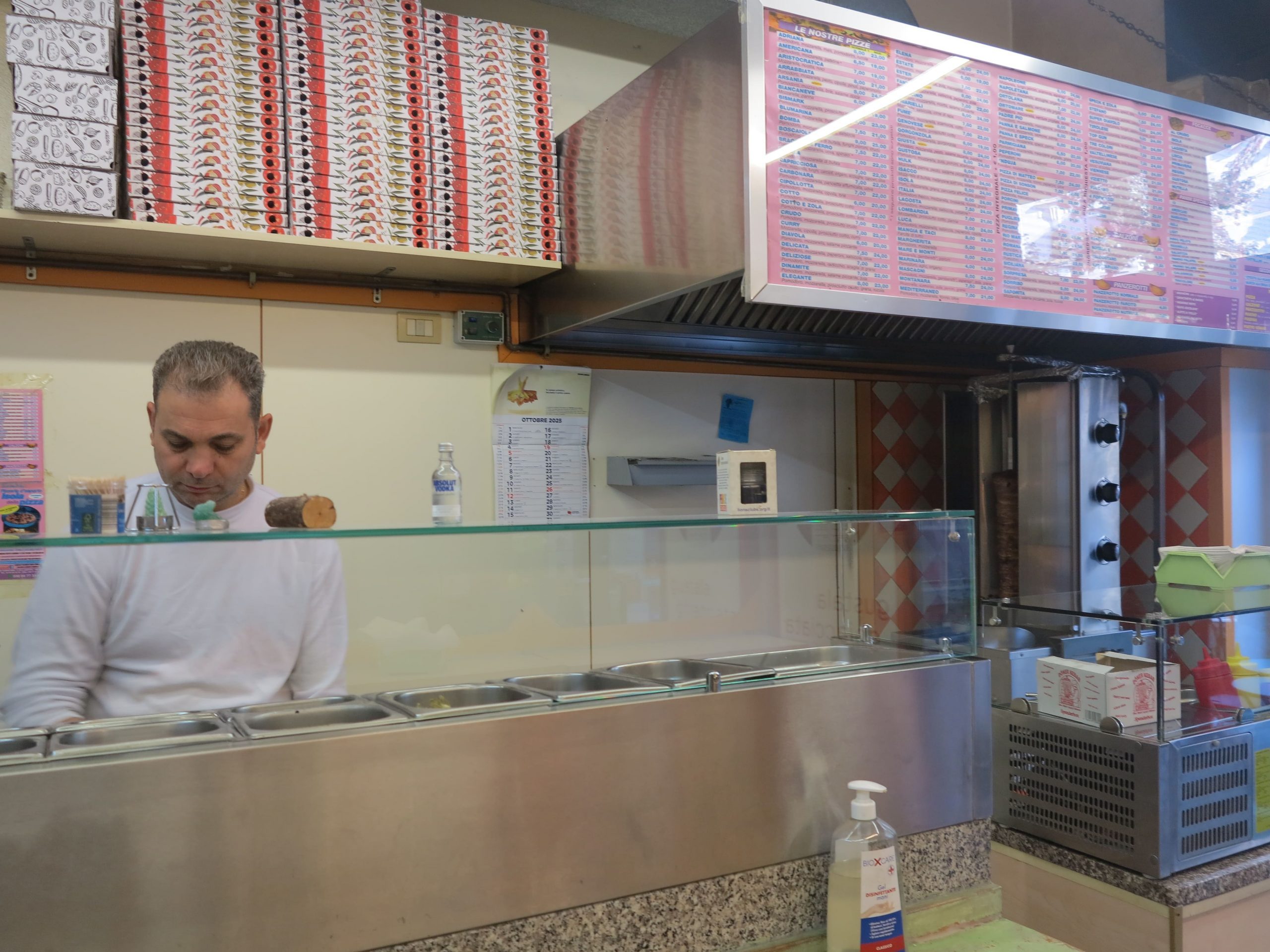 Sharif è parte di una nutrita comunità di esperti pizzaioli arrivati dall’Egitto che, nel corso di quattro decenni e più, ha silenziosamente ridisegnato la mappa gastronomica di Milano. «Ho resistito alla pandemia, ai lavori della metropolitana e all’inflazione», mi spiega l’oste, contento di avere una clientela che lo segue da anni e che mangia il cibo dei suoi cuochi – cibo che l’uomo riesce a mantenere a prezzi popolari.