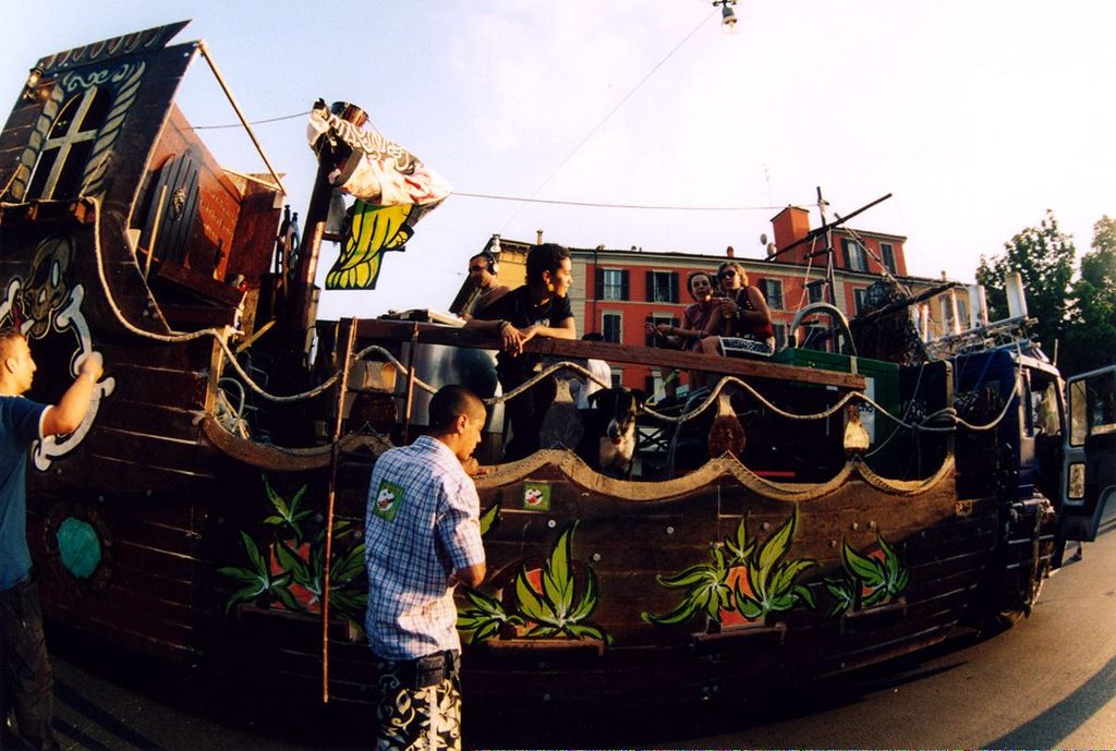 C’è una storia altrettanto importante a Bologna, con la Street Rave Parade Antiproibizionista, che arriva dal laboratorio cyborg dei Mutoidi nel 1997, con camion esuberanti, draghi metallici sputafuoco e massicci soundsystem che rivendicano la depenalizzazione dell’uso delle sostanze psicoattive. Parliamo di decine di migliaia di partecipanti, un evento che legò tra loro movimenti di vario titolo, lotte e spazi occupati.