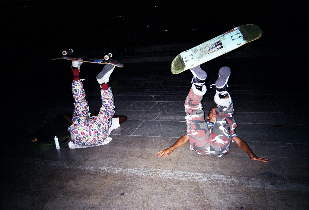 Questo per farci capire la rilevanza assunta a livello internazionale di Piazza Duca d’Aosta, con skateboarder statunitensi ed europei dalla Francia, dalla Spagna, dall’Inghilterra o dalla Svezia che svernano in primavera tra i pavimenti scheggiati – dai blindati delle forze dell’ordine, mica dai truck o dalle rotelle delle tavole – a La Centrale. Ma se vi domandate cosa fosse prima di questo, o dove si andasse a skateare, o chi qui a Milano ne rappresenta gli sviluppi nostrani e meneghini, la storia va fatta risalire ovviamente a prima. Se la scena dello skate è attiva a Milano almeno dagli anni Settanta, tra i fine Ottanta e i Novanta gli spot prediletti erano Piazza Leonardo Da Vinci (prima che le lastre venissero sostituite dalla ghiaia), il Muretto a San Babila (ora inglobato dalle vetrine di Gap), e la forse più importante Piazza Borromeo, detta BOR o più simpaticamente “Mini-Duomo”. I ragazzi di CHEF GSF – tra gli spiriti tutelari de La Centrale da skate – ci raccontano che fu proprio la crew del BOR che, a seguito dell’inagibilità della piazza (alias: i sanpietrini), formò il primo nucleo in Piazza Duca d’Aosta.