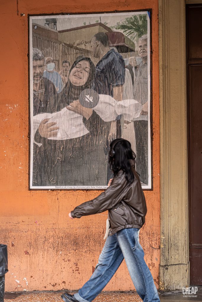 “Ogni singolo giorno – scrive CHEAP – centinaia di civili muoiono a Gaza sotto le bombe israeliane. Non smettere di parlare della Palestina. Non smettere di pubblicare post sulla Palestina. Non smettere di stampare e affiggere manifesti sulla Palestina”.