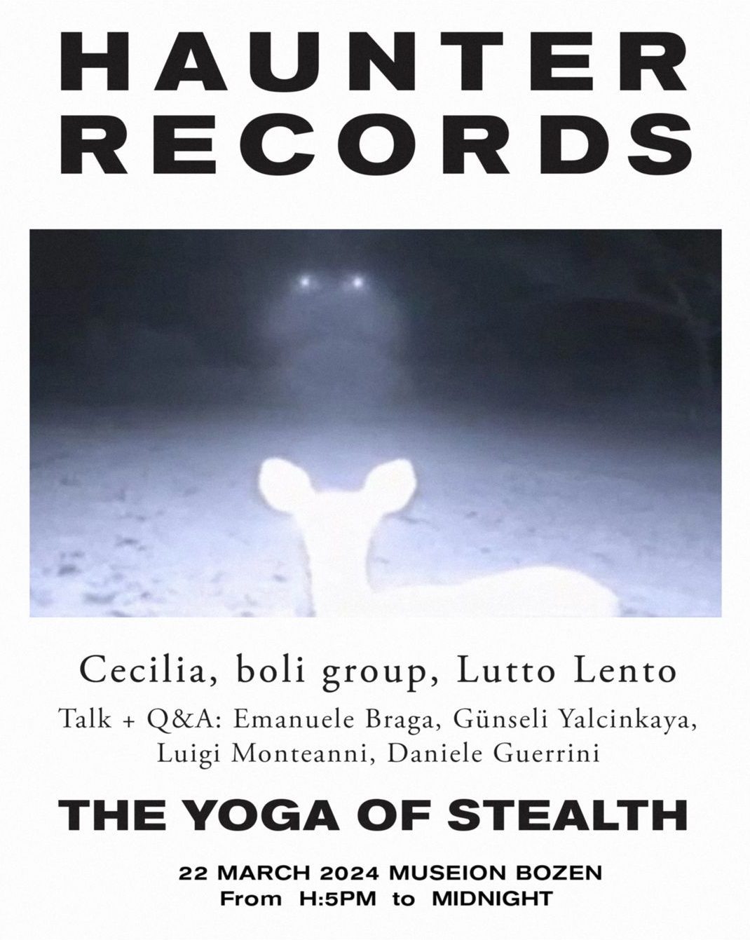 Dopo una discussione in cui uno degli storici fondatori di Macao e attivista Emanuele Braga, il co-fondatore di Haunter Daniele Guerrini e il sottoscritto cercheranno insieme alla scrittrice e folclorista di Internet Gunseli Yalcinkaya di riaprire il file del Macao plothole, si esibiranno tre artisti dell’etichetta: l’ensemble danese di nuovo folklore da (anti)camera boli group, le schegge di spoken word e fantasmagorie sonore della performer franco-canadese Cecilia e la weird-fiction sonica del polacco Lutto Lento.