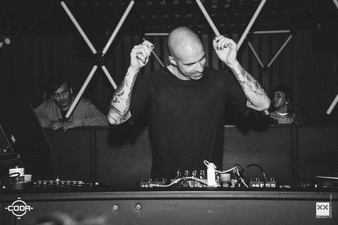 L: Chris Liebing, sali e scendi con il suo live TR303. Hard techno, e chi meglio di lui.