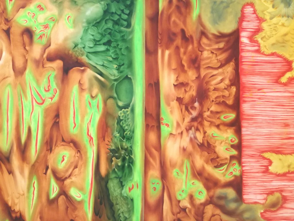 Al piano di sopra l’indagine architettonica è il terreno più interessante, con lo spazio diventa spesso elemento di costrizione e sopraffazione. Così, Tomaso de Luca fa attraversare il pubblico attraverso un prefabbricato diabolicamente rosa, Benni Bosetto riempie il suo spazio con entità pluricellulari semiliquide e il duo DAAR (Sandi Hilal – Alessandro Petti) riflette sull’eredità abitativa e urbanistica del periodo coloniale italiano in Africa. Passate ledissacranti fatiche di Ercole del collettivo Zapruder, il saluto finale diurno è affidato a dei fiori giganteschi appesi lungo una delle due scalinate da Petrit Halilaj e Alvaro Urbano, mentre quello notturno – e perpetuo – lo firma Norma Jean, che, tramite un bio-programma elaborato dal Politecnico di Milano, illuminerà la volta d’ingresso del Palazzo delle Esposizioni seguendo il ritmo e l’intensità del proprio respiro.