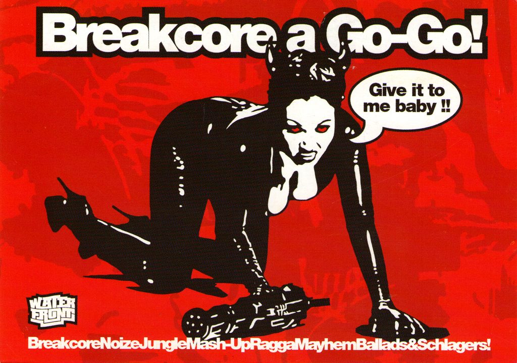 È il caso della breakcore: per quanto chimerico e difficile da definire – guardando al suo insolito percorso evolutivo –, il genere nasce come tentativo di usare i linguaggi del caos e dell’aggressività per giocare a rialzo con la sound system culture inglese. Nelle sue prime iterazioni la breakcore aumentava quantitativamente gli elementi anti-musicali e le spiazzanti decostruzioni ritmiche già presenti nella jungle, non per demolirne o sopprimerne il groove, quanto per aumentarne esponenzialmente la presenza e il peso, attingendo dall’uso di distorsioni sempre più aggressive e dai tempi rapidi che caratterizzavano le frange più dure della techno.