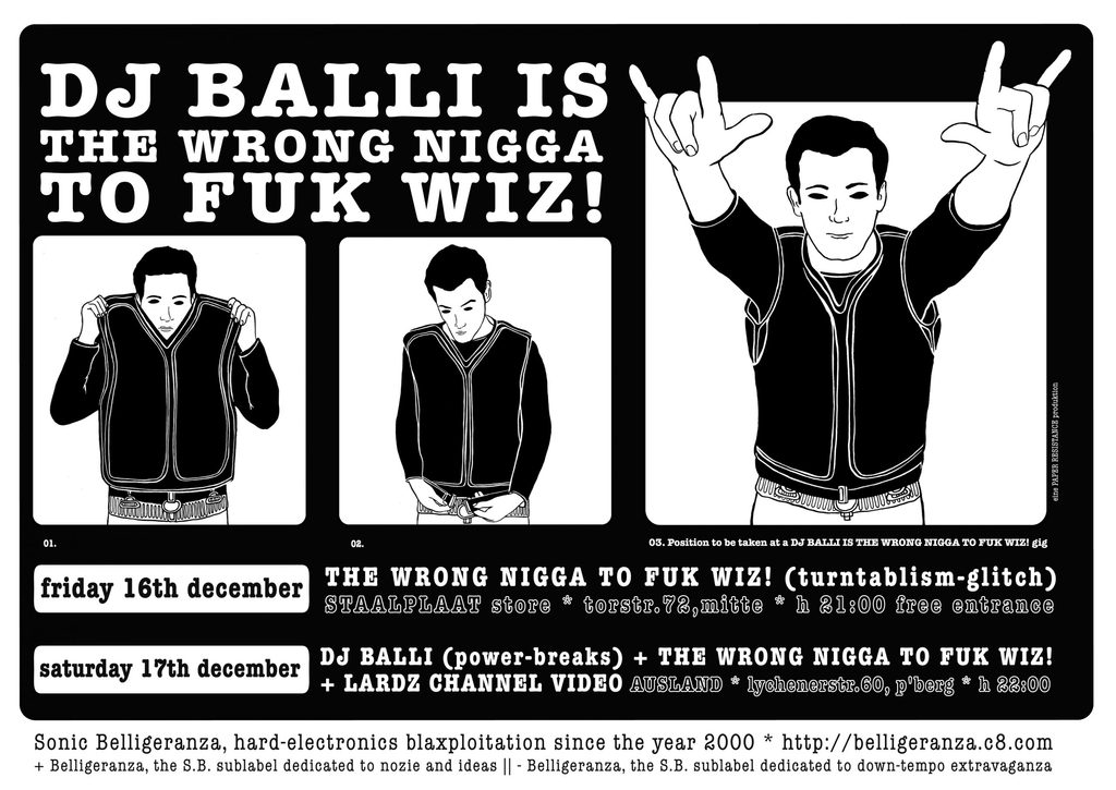 Balli had already been in contact with fringes of the neo-situationist movement such as the Luther Blisset Project in Bologna, but it was in London that he became a member of a radical space-oriented dis-organization named Association of Autonomous Astronauts, a group also connected with other figures in the breakcore scene. At Dead By Dawn, with its crossover of rave culture, avant-garde politics (often personified by infamous characters like Stewart Home) and experimental anti-art, he found a new home. Soon after, Scud taught him how to DJ, and he quickly mastered the most radical and challenging techniques of turntablism. Riccardo Balli had now transformed into DJ Balli, ready to move back to Italy and introduce the global underground to his unique brand of breakcore “alla Bolognese”.