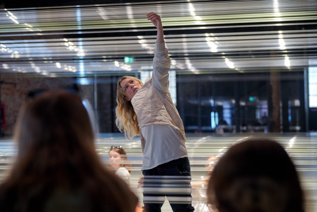 Ciò giustifica in parte la scelta molto sorprendente di consegnare il Leone d’Oro alla Carriera a Cristina Caprioli, artista italiana residente in Svezia, che per prima, dice, si è sentita sorpresa, smarrita, incredula e profondamente felice di fronte a questa nomina: «mai nella mia vita avrei potuto immaginare di ricevere un simile riconoscimento. Io, così intrinsecamente marginale, assolutamente precaria». Oggi settantenne, Caprioli ha costruito la sua carriera nell’estremo nord dell’Europa, indagando il gesto in molteplici forme che ha riassunto in TUNG, un libro di composizione coreografica comodamente scaricabile in pdf dal suo sito, e affiancando alla danza, sempre in relazione diretta con l’inafferrabile, un acuto lavoro di design dello spazio e di indagine sulla tecnologia in dialogo con il corpo. Nel festival ha una presenza massiva con tre dei suoi spettacoli più recenti, in programma quasi quotidianamente, in particolare Flat Haze, performance durational di nove ore che viene attivata ogni giorno in Arsenale, dando quindi la possibilità di conoscere a fondo il suo lavoro e le sfaccettature della sua produzione.