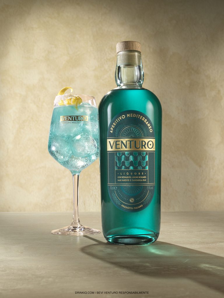 Per assaporare tutte queste suggestioni, magari affacciati all’ora del tramonto da un rooftop o coi piedi a contatto con la spiaggia, in quel momento semi-incantato in cui il cielo è ancora chiaro ma sfuma verso il blu (la cosiddetta blue hour) è nato VENTURO Aperitivo Meditteraneo, il nuovo raffinatissimo liquore di casa Diageo.