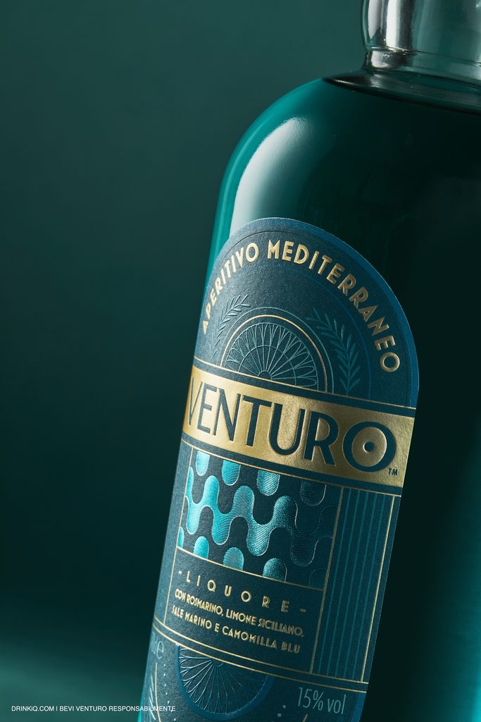 Una bellezza senza tempo, quella del Mediterraneo, che ha ispirato VENTURO Aperitivo Mediterraneo anche in tutta l’estetica della bottiglia: la veste grafica raggruppa gli elementi identitari di stile, ricerca e sofisticatezza italiani attraverso dettagli dorati, pattern sinuosi come le onde del mare, e intarsiati come i pavimenti in marmo di certe terrazze a picco sul mare.