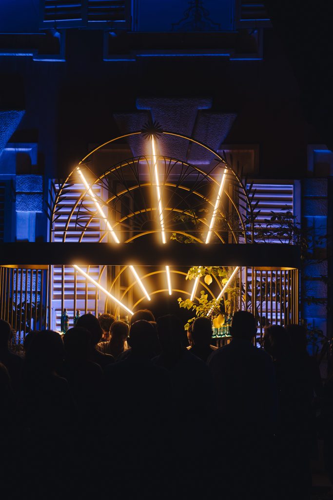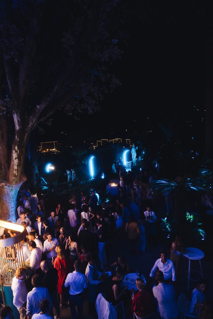 Il blu, dicevamo, è stato l’elemento caratterizzante di questa notte estiva fatta di degustazioni, chiacchiere conviviali, performance musicali e balli: dagli scenografici allestimenti ai neon, dal sorprendente laser show, ai magnetici dresscode sfoggiati dalle invitate e dagli invitati.