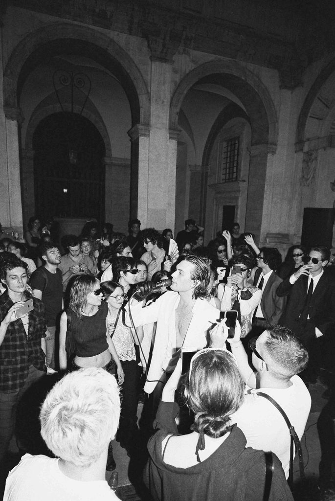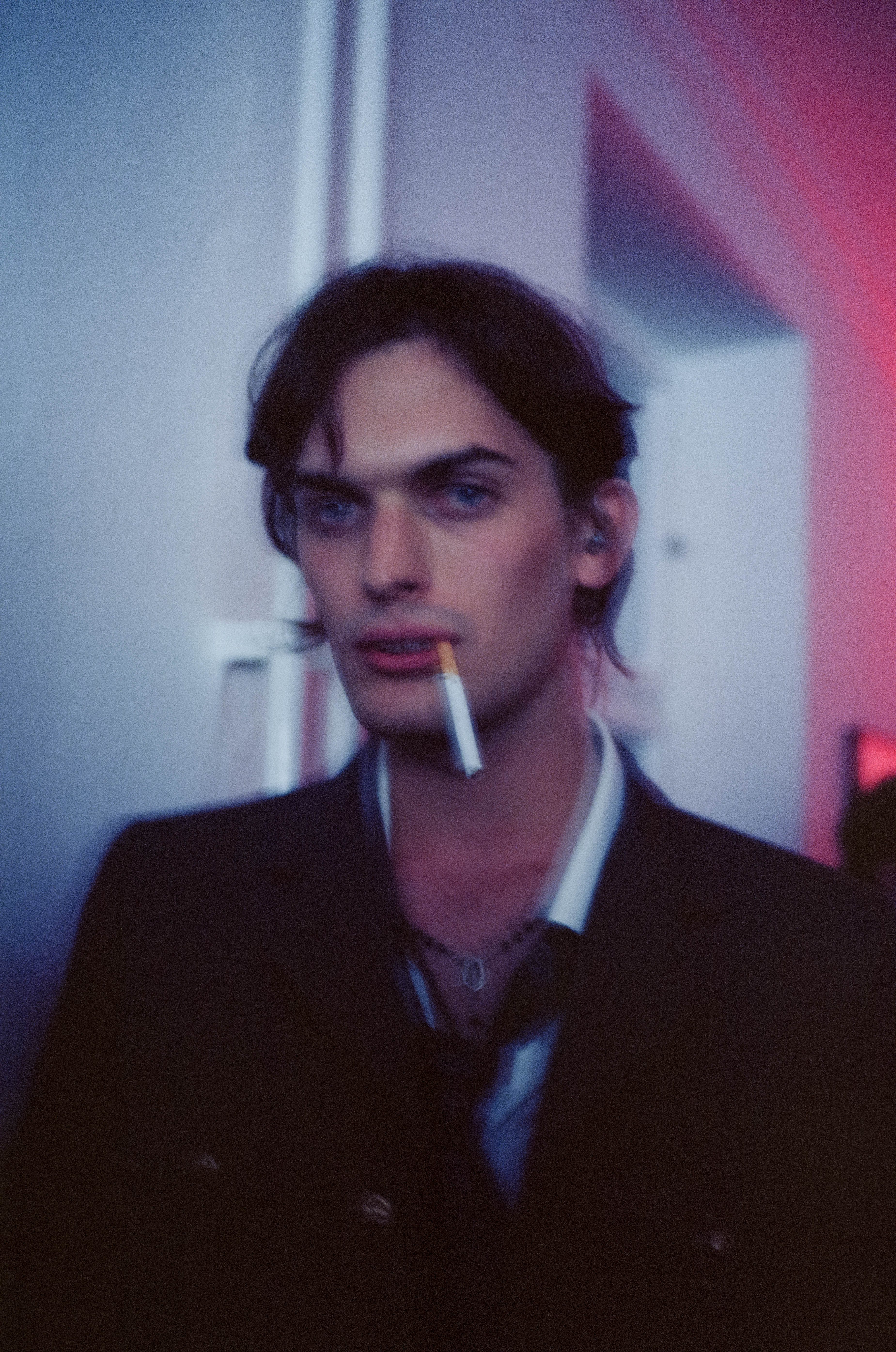 Lorenzo Sutto: Penso che questa totale assenza di confini tra le lingue, quasi come fossero solamente diverse note che possiamo usare a nostro piacimento, sia una delle cose che più ci differenzia dagli altri. Un universo dove piegare il senso e il suono di una parola a favore di un’altra completamente diversa, dove significato e significante si perdono tra giochi di parole e traduzioni fittizie. Questa frase in particolare però vuole rappresentare anche altro. Nel nostro mondo, nel mondo della musica, nel mondo della moda, la posa è vita, la posa è tutto e la lingua non è altro che un’altra carta che aggiunge credibilità all’identità fittizia – o non – che ci si ritrova a ostentare in diverse situazioni mondane – o non. In questo caso specifico European Vampire sta ammettendo quanto tutto questo atteggiarsi a connaisseur sia finto e sfonda la quarta parete facendo quello che in questi ambienti rarefatti e finti non si fa mai: ammettere la verità. E quindi parlo francese ma sono italiano.