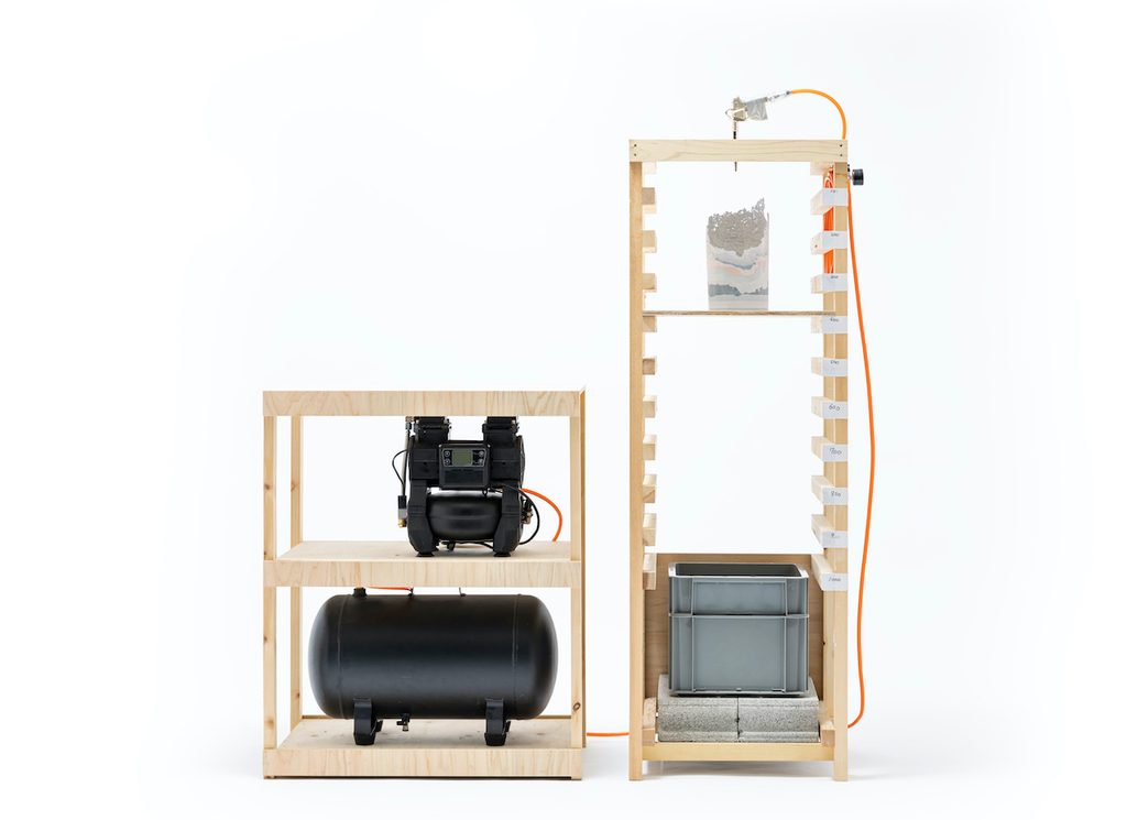 Xella, produttore internazionale di materiali edili, ci ha messo a disposizione novemila blocchi di cemento naturale che costruiranno un paesaggio molto omogeneo fatto di lunghe “stecche” di altezze e profondità diverse dove appoggiare o appendere i progetti di qualsiasi dimensione. Alla fine dei cinque giorni di mostra, i blocchi torneranno nel ciclo di produzione e verranno riutilizzati. Un allestimento, dunque, che non lascia tracce.