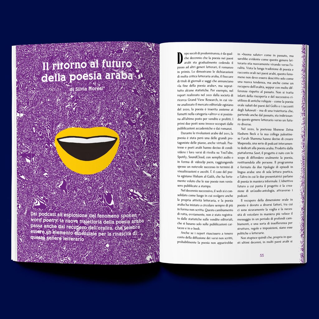 “Metamorfosi” è un tema che è venuto fuori un po’ sulla scia del libro. Volevamo partire con qualcosa che sottolineasse come la cultura araba sia in continuo cambiamento, tutt’altro che statica. Si tratta di un tema ampio, in cui entra veramente di tutto, cosa che ci convinceva anche perché per il primo numero volevamo guardarci intorno, vedere che tipo di contributi ci arrivavano, e proporre un tema troppo specifico non ci avrebbe facilitato in questo senso. Alla fine abbiamo avuto contributi molto eterogenei, ma il risultato è stato totalmente soddisfacente perché ha incuriosito i lettori in maniera trasversale. Come punto di partenza era proprio quello di cui avevamo bisogno.