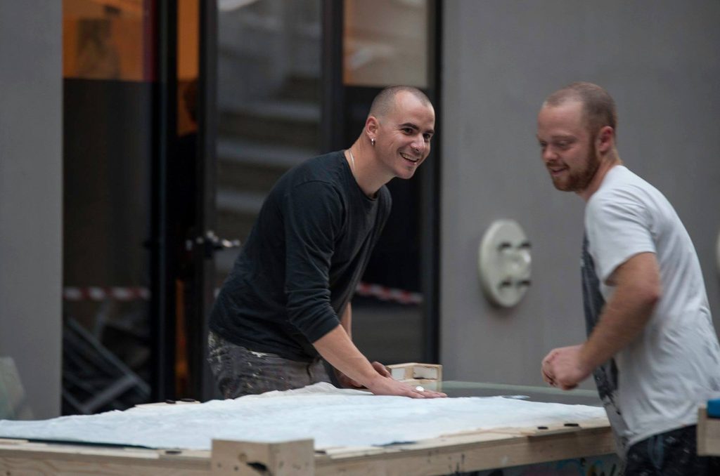 Quando lavoro in studio ho bisogno di totale intimità. Come dicevo prima, è la mia toilette. Nei progetti che coinvolgono lo spazio pubblico, invece, sono più che abituato a essere osservato durante il processo e ogni volta l’esperienza è diversa in base al tipo di pubblico che c’è. Questa volta abbiamo scelto di stampare le lastre e installarle nel cortile del Macro per condividere il processo creativo in uno scambio di conoscenze e stimoli, per concepire il Museo come uno spazio pubblico vero, dedicato alla cultura e al sapere, dove artista e fruitore si incontrano.