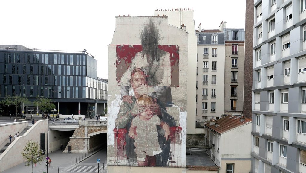 Dopo un po’ di anni di interventi illegali nelle strade di Madrid, nel 2010, sono stato invitato per la prima volta a un festival di arte pubblica, a Istanbul, e lì, sempre per la prima volta, mi sono sentito libero di esprimermi, ma allo stesso tempo responsabile per la mia azione, per il segno che avrei lasciato. È iniziato così un lungo periodo di interventi realizzati davvero in tutto il mondo, confrontandomi con superfici di grandi dimensioni e contesti molto diversi, cercando di mantenere una relazione dialettica con lo spazio e con chi lo abita. Tra quelle più significative per me ci sono “Les Trois Ages” (Parigi, 2014), “Portals” (Kiev, 2016), “Padre” (Sulitjelma, 2015), “Fer Llenya” (Barcellona, 2015), “L’origine du Monde” (New Delhi, 2016), “Show” (Jacksonville, 2016), ma anche tante altre.